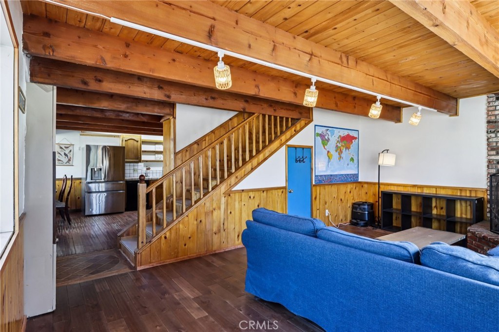 Welcome to this character-filled home offering space, versatility, and beautiful mountain views of both Bear Mountain and Gold Mountain. Set on a large, fully fenced lot with a spacious driveway and attached 2-car garage, this property provides both privacy and functionality. A standout feature is the downstairs bedroom suite, complete with its own bathroom, kitchenette, and separate handicap/wheelchair-accessible entrance—ideal for multigenerational living, guests, or potential rental income. A Junior ADU permit has been applied for and is currently in process, adding even more value and opportunity. Inside, the home is rich with charm, featuring beamed pine ceilings and classic wainscoting. The inviting living room is centered around a cozy wood stove with a brick surround and hearth. The open kitchen and dining area are filled with natural light, creating a warm and welcoming space for everyday living. Go outside to enjoy both a front deck and backyard patio—perfect for relaxing, entertaining, and taking in the peaceful surroundings. Upstairs, you’ll find generously sized bedrooms, including two that share a Jack-and-Jill powder room, along with a second primary suite featuring its own en-suite full bathroom. With its flexible layout, unique character, and scenic setting, this home offers a wonderful opportunity for a variety of living arrangements.