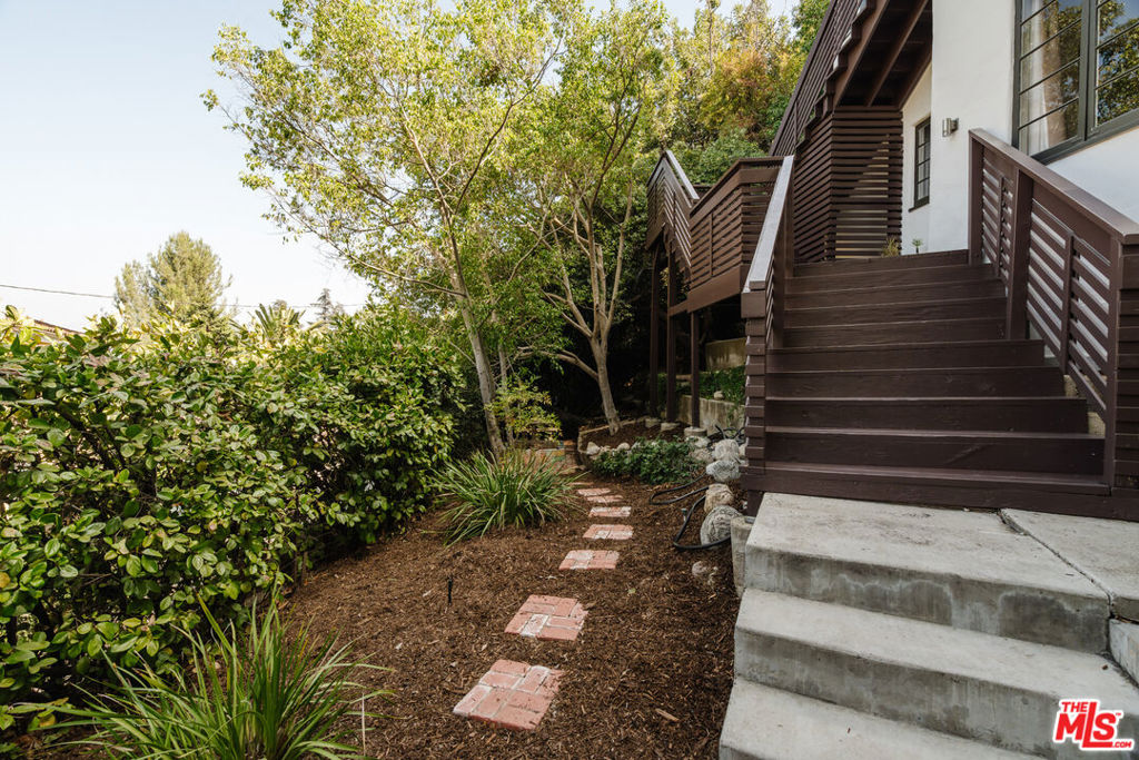 Perched on a quiet hillside in scenic Mount Washington with sweeping views, this updated Spanish retreat offers serenity and privacy with its neighboring second parcel included in the sale. Tucked away from the street behind mature hedging, this stylish 3BR/2BA home features gorgeous original character as well as modern updates for easy living. Enter from the charming front porch to graceful open spaces that flow seamlessly and bask in natural light. The beautifully updated kitchen with modern appliances, living room, and dining area feature original hardwood floors throughout and restored original windows that take in the verdant views. The home is light and bright with great indoor-outdoor flow with French doors leading out to the back patio from the living room. Two spacious bedrooms and a full bath complete the layout upstairs. The lower level primary suite feels private andexpansivewith walk-in closet and en-suite bath along with a separate entrance to the front deck and walkway. The outdoor space feels magical with terraced gardens and a decorative fountain area as well as multiple patios perfect for entertaining. Ultimate privacy and great potential is afforded with the additional APN next door included in the sale offering a lot size of approximately 9,000sf. Savvy buyers may take advantage of this with the opportunity to build an additional structure, pool or further connection of the properties. Gated from the street with a 2-car garage offers off-street parking and additional storage. Located in the heart of Mount Washington on a desirable street close to all the best of NELA including Highly Likely, Kitchen Mouse, Civil Coffee and much more.