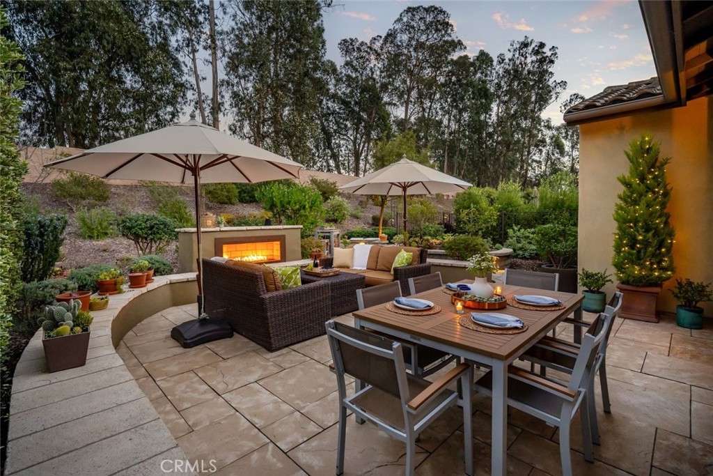 Nestled against a peaceful greenbelt, this residence immediately captivates with its warmth, beauty, and sophistication. Step inside and rich hardwood floors lead you toward the heart of the home — an impressive chef’s kitchen. Warm cabinetry with soft-close and roll-out drawers pairs with a striking quartzite island, its graceful gray veining creating a refined centerpiece for gathering and entertaining. Stainless steel appliances, custom backsplash and under cabinet lighting complete the space with a polished, modern touch. The kitchen flows seamlessly into the great room, where expansive windows frame serene views and fill the space with natural light. Beyond the French doors, the home reveals its most enchanting feature: a truly luxurious indoor-outdoor living experience. A wide paver patio unfolds like an outdoor great room, anchored by an oversized fireplace that sets the stage for morning coffee, sunset wine, and memorable evenings under the stars. With an inviting sitting and a dining area, the space feels effortlessly expansive, doubling its sense of space. A natural extension of the home that enhances both its livability and its sense of retreat. Follow the paver pathways and the garden begins to unfold like a curated landscape. Raised beds, fruit trees & vibrant plantings create a setting that feels lush yet remarkably low-maintenance. Quail scuttle, hummingbirds hover over blossoms; birds chatter, and monarch butterflies drift about. It’s a living sanctuary, rich with movement and color. As the sun sets, the surrounding trees take on a bronzed glow, casting a warm, golden light across the yard. A home where every detail has been thoughtfully designed: fresh paint, upgraded bathrooms with double vanity and Silestone slab counters, Air Conditioning, upgraded lighting, window treatments, ceiling fan and added storage. A pre-paid solar lease adds exceptional value — the homeowner has enjoyed zero electric bills and annual credits. More than a home, this is a refined private retreat that invites you to savor the beauty of the Central Coast both inside and out.