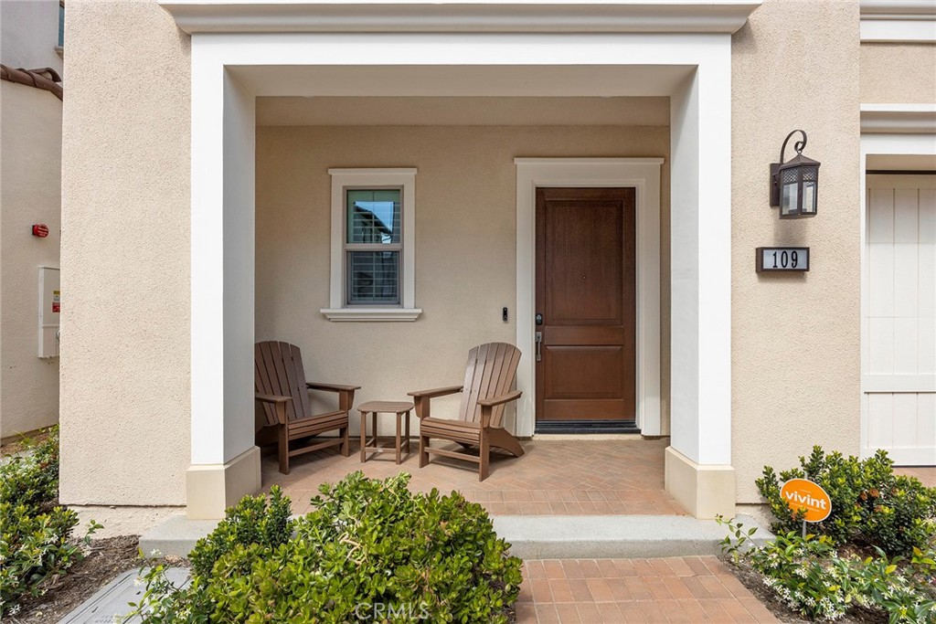 If you’re looking to call Portola Springs home and want a newer detached 3-bedroom residence, 109 Fairgreen stands out for all the right reasons. With sweeping mountain views, no neighbor on one side, and abundant natural light throughout, this home offers a rare combination of privacy, scenery, and thoughtful design that’s difficult to find among other homes currently available in the neighborhood. Inside, the home showcases wide-plank laminate flooring, recessed lighting, plantation shutters, custom designer drapery, upgraded fixtures and hardware, and a custom stair runner that adds warmth and character. The kitchen is the true centerpiece of the home, featuring stunning Taj Mahal quartzite surfaces that flow seamlessly across the countertops, backsplash, and into the bathrooms, paired with premium Wolf appliances, a 36-inch Sub-Zero refrigerator, and beautifully crafted cabinetry for a refined and timeless aesthetic. Upstairs, the primary suite feels like a private retreat, complete with a newly tiled spa-style shower, designer tile flooring, and elegant designer wallpaper. The secondary bathrooms continue the same elevated design with coordinating tile finishes and curated wallpaper selections, creating a cohesive, luxury feel throughout the home. Large panoramic sliding doors create effortless indoor-outdoor living and open to a professionally landscaped backyard overlooking Tomato Springs Park, where the mountain backdrop and open space provide both privacy and peaceful views. Additional upgrades include a finished garage with epoxy flooring, Tesla charger, overhead storage, full interior insulation, and paid-off solar panels, delivering both convenience and energy efficiency. Located in the highly desirable Portola Springs community, residents enjoy access to resort-style pools, parks, scenic trails, and top-rated Irvine Unified schools, making 109 Fairgreen an exceptional opportunity for those seeking comfort, style, and location in one of Irvine’s most sought-after neighborhoods.