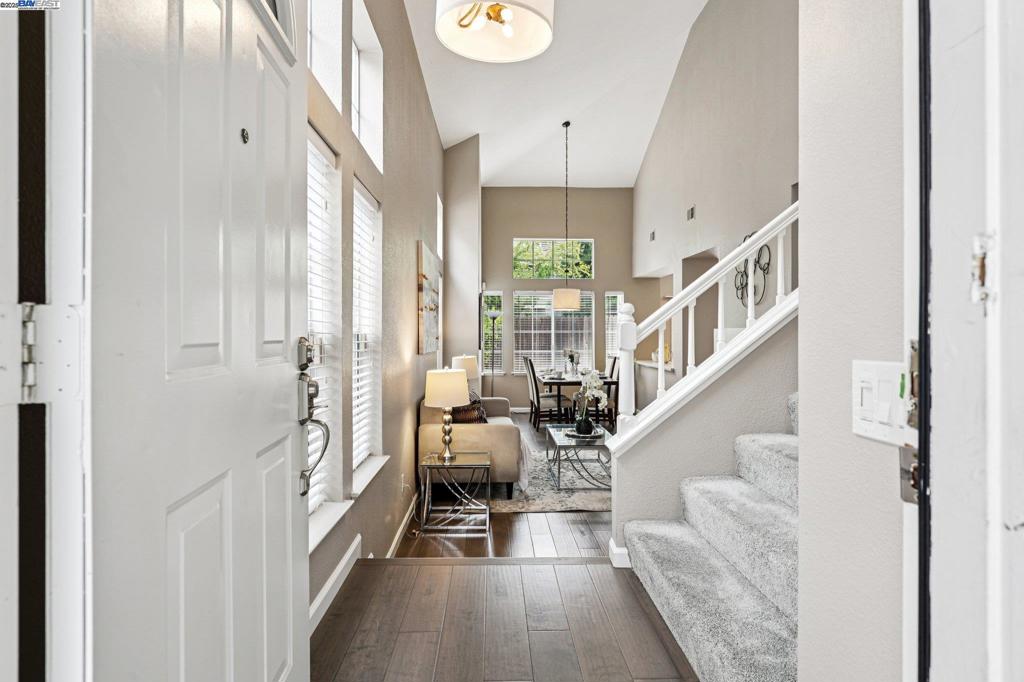 Welcome to this stunning townhome in the desirable Village Parkway Community of Hercules. This inviting two-story residence features vaulted ceilings, a designer color palette, and abundant natural light throughout. The spacious floor plan includes a formal living and dining area ideal for entertaining and everyday comfort. The modern kitchen is updated with quartz stone countertops and all major appliances. Wood flooring was installed in 2017, adding warmth and elegance to the home. A convenient inside laundry, a hallway white cabinet for extra storage, and an attached oversized two-car garage provide functionality and convenience. The garage is further upgraded with LED lighting, a MyQ-compatible opener, and an updated insulated garage door. Upstairs offers three full-size bedrooms, two and a half updated bathrooms, and a loft with an office area perfect for a peaceful and productive workspace. Outside, the rear and side yards have been concreted for easy access, with dedicated gardening space and a working drip sprinkler system. Additional upgrades include central AC for year-round comfort. The community is just a short stroll to public transportation, shopping, banks, and scenic walking and biking paths.