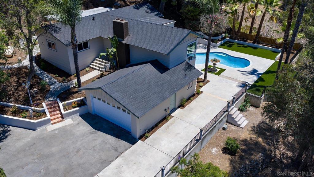 WANT TO AVOID THE HUSTLE AND BUSTLE OF A CROWDED CITY LIFE? THIS IS TRULY A PRIVACY GEM, FULLY REMODELED HOME, WITH PANORAMIC VIEWS TO ENJOY FROM EITHER YOUR LIVING ROOM, KITCHEN/BREAKFAST AREA, OR BEDROOM. THE PROPERTY SITS ON OVER AN ACRE AND ATOP GEM HILL LN, SURROUNDED IN PRIVACY AND TREES! WIND YOUR WAY UP THIS SEMI-RURAL NEIGHBORHOOD ROADWAY, WITH NO STREET LIGHTS TO BLOCK YOUR VIEW OF THE STARS, BUT BE WITHIN 35 MINUTES OF MOST ANYWHERE YOU NEED TO GO IN SAN DIEGO–FROM LA JOLLA SHORES, TO DOWNTOWN SAN DIEGO, AND LINDBERGH INTERNATIONAL AIRPORT. FISHING AND BOATING JUST MINUTES AWAY AND MILES OF HIKING TRAILS A FEW BLOCKS NORTH (SEE MAP IN PHOTO GALLERY.). NEWLY REFINISHED POOL FOR ENTERTAINING. TWO FIREPLACES, CENTRAL AIR, ALL NEW APPLIANCES, A HOST OF NEWLY BUILT IMPROVEMENTS AND EXTRAS (SEE SUPPLEMENT BELOW). 4TH BEDROOM ORIGINALLY A DEN, NOW CONVERTED WITH NEW CLOSET, WITH EXTRA 1/2 BATH ADDED BY PREVIOUS OWNER. VIRTUAL STAGING USED WITH PHOTOS. SELLER TO CONSIDER OFFERS BETWEEN $950,000-$1,050,000. New 200 amp electrical service 50 amp plug in the garage for electric cars All the wiring has been replaced, outlets, switches etc upgraded with ground wires. Can lighting throughout All new appliances pool equipment refreshed, new filter mesh New pool plaster, tile and coping New skimmer Automatic pool filler New roof Fresh paint inside and out All new hard flooring, same throughout Master bathroom Double sinks New tub in full bath All New tile in master Glass door from master bedroom to patio All new lighting fixtures Deck for jacuzzi Two fireplaces Open beam ceiling is insulated All new cabinetry, wood grain Air conditioning fully serviced Ducting re insulated New drain line to septic All new plumbing Dual pane windows with bevel glass on the inside for easy cleaning New garage door opener New ceiling fans with remotes 100 ft rv / trailer parking New shaded private patio. Slab for jacuzzi. Charge plug for electric car. Epoxy garage floor