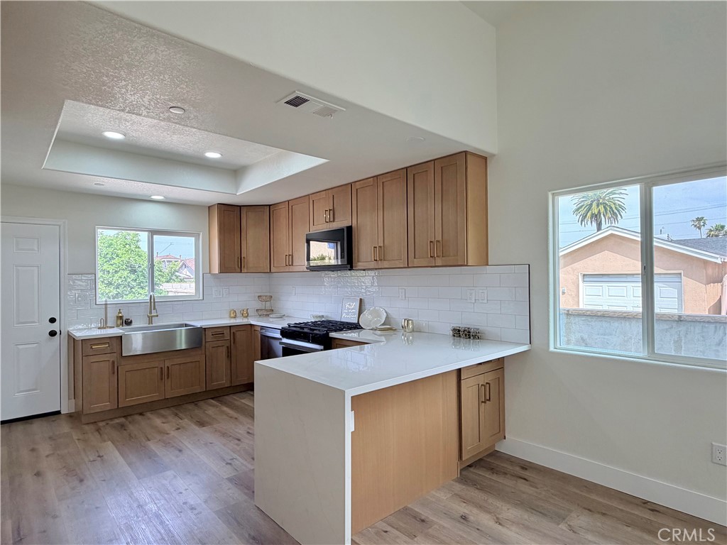 Welcome to this beautifully upgraded 4-bedroom, 2 bath homeĀ in a fantastic neighborhood in Wilmington. The home has an LA feel with a nice upgrade to include a new kitchen, new wood grain vinylĀ flooring, baseboards, quartz counter tops, white wave backsplash, new appliances and goldĀ accent touches. Walk into the open floor plan with tall ceilings, recessĀ lighting for a bright living space and plenty of natural lighting. Both restrooms were remodeled to include new vanities, lights, mirrors and custom stone accentsĀ walls with white wave tile to matchĀ the kitchen. All 4 bedrooms are oversize with new flooring, oversized baseboards and sliding closet doors. TheĀ back yard is all stone with mature trees and plenty of room to add a covered patio. The front is fenced and has plenty of parking and an iron fence. The entire neighborhood is lined with nice homes and school and shopping are nearby. Move in ready for the buyer and is available.