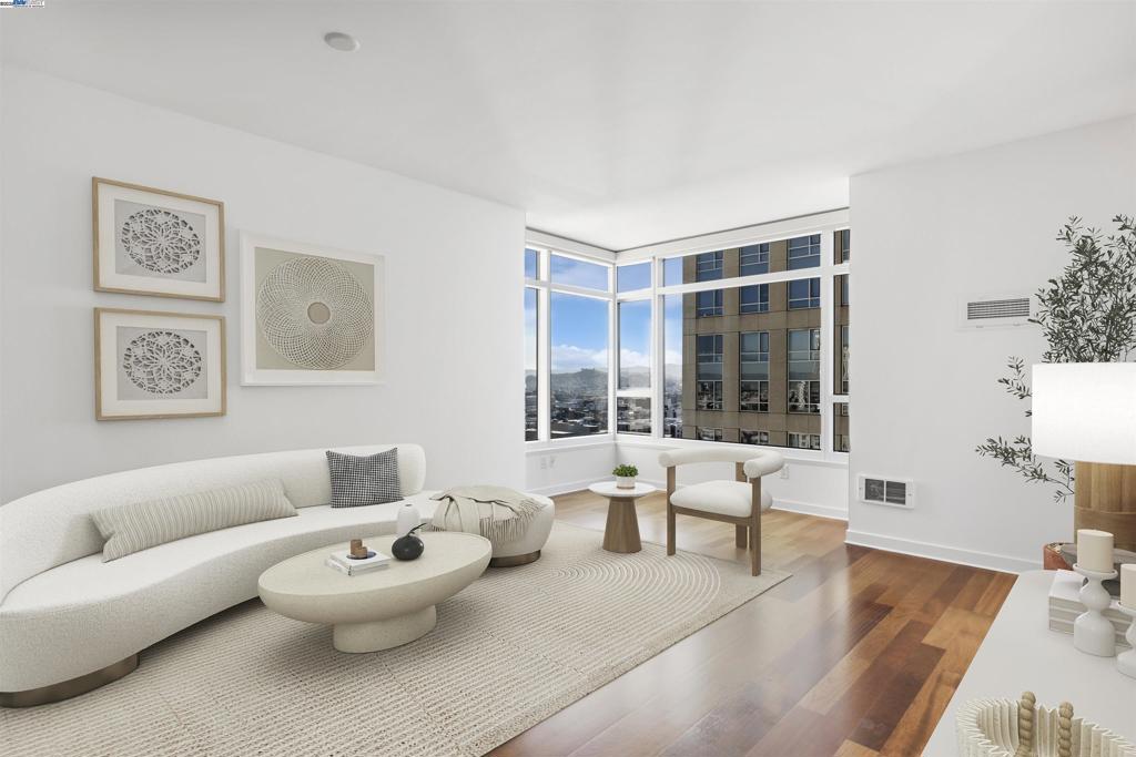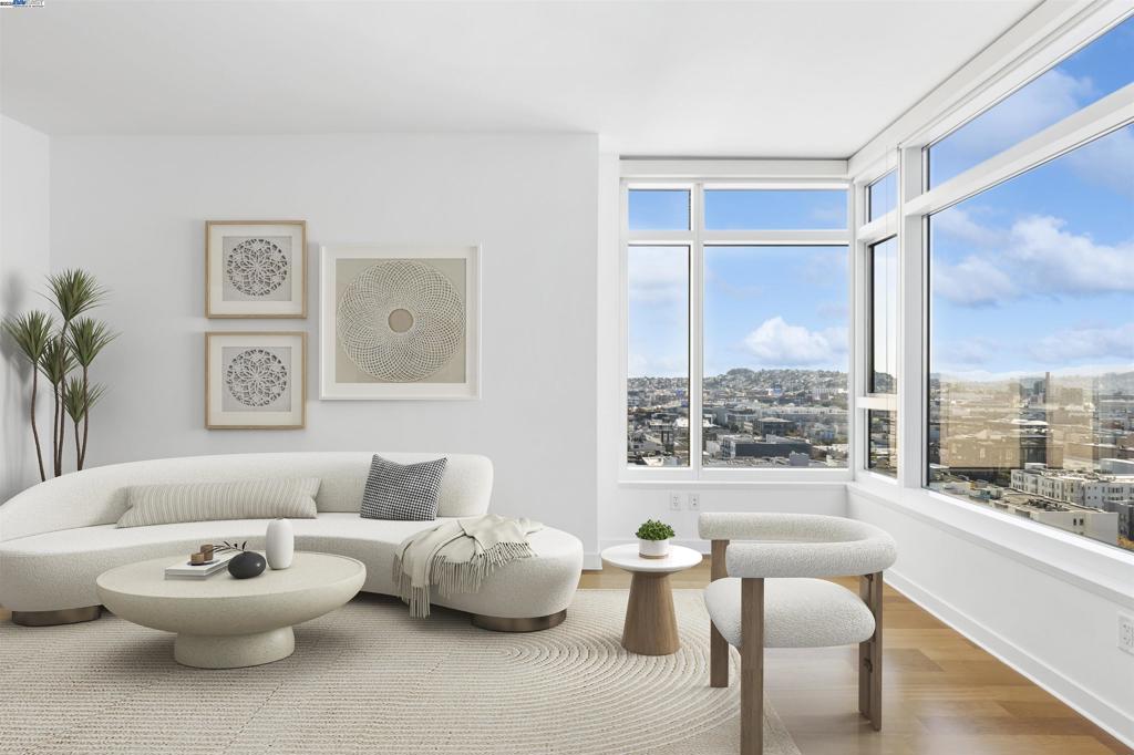 Designed for sophisticated city living, SOMA Grand offers an extraordinary blend of style and comfort. This lovely 14th floor luxury condo is meticulously maintained with views of the city. Bright unit with timeless charm and engineered hardwood flooring throughout. Studio Becker kitchen cabinetry, Cambria Quartz countertops, Bosch dishwasher/microwave/electric range oven, new Samsung french door refrigerator, stacked washer & dryer, dual closets, spacious bathroom. Full service building amenities include 24 hour security, concierge service, complementary premium coffee in the lobby, bi-monthly housekeeping. Tranquil 5th floor park featuring meditation garden, sun deck with ample seating areas to relax, outdoor BBQ, Spa, fire pit, gym, ping pong table, wellness room for massage and chef’s kitchen in club room perfect for entertaining. Conveniently located in the heart of San Francisco’s mid-market neighborhood offering easy access to the financial district, The Embarcadero, SF Opera, Orpheum Theater, Westfield SF Center, SF Giants Oracle Park, Union Square and city nightlife. Farmers market, Wholefoods, Costco and a multitude of dining options to explore. Close to BART, MUNI, Caltrain and I 80/101/280. Attached parking garage lease is available through Ace Parking Management.