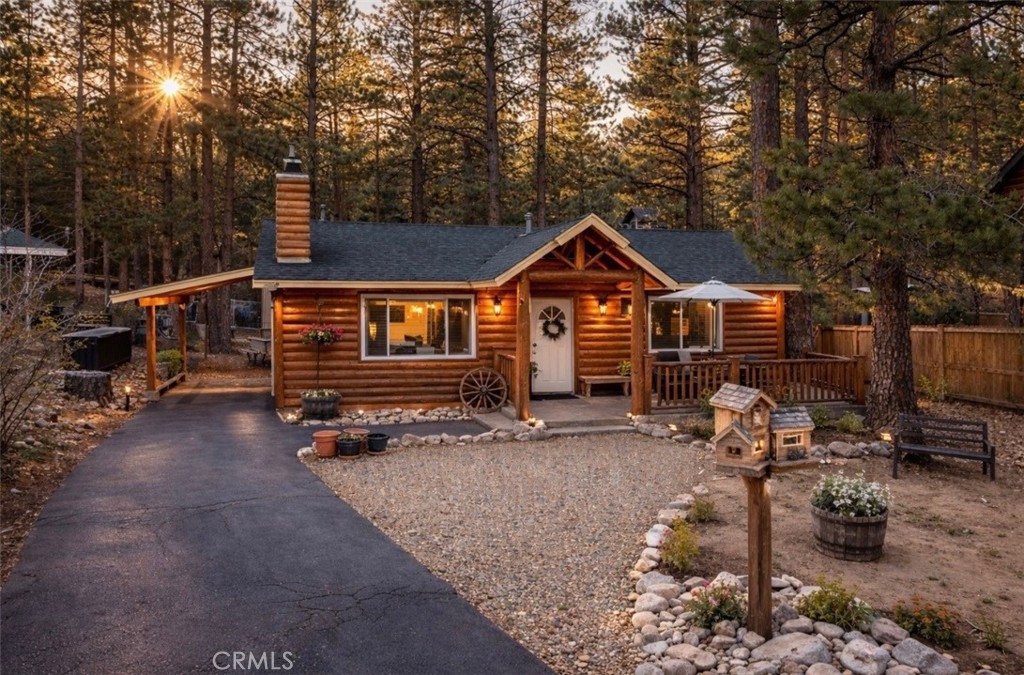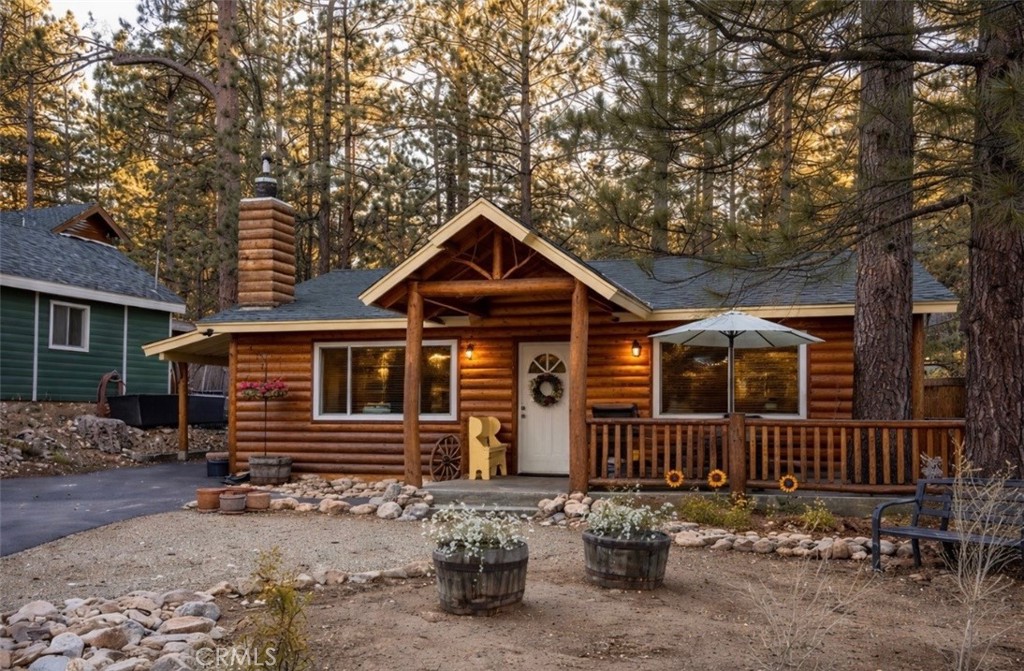 Mountain charm meets modern updates in this log-style cabin nestled among the pine trees on a double lot. This inviting mountain retreat features many recent upgrades including dual-pane windows, updated flooring, newer water heater, upgraded bathroom vanity with tile, updated toilet, and a pellet stove for cozy mountain living. Additional improvements include updated kitchen flooring, replaced switches and outlets throughout, updated ceiling fans and lighting, and a newer microwave. Enjoy the peaceful forest setting with nearby hiking trails, while still being close to Big Bear Lake for boating, local golf courses, and nearby ski resorts. Great opportunity for a full-time home, weekend getaway, or investment property.