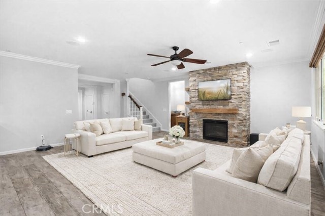 A Rare Design. A Private Retreat. A Home That Truly Has It All. This exceptional home offers the best of both worlds—the ease and livability of a single-story-style floor plan paired with the flexibility of bonus space upstairs. The primary suite and three secondary bedrooms are thoughtfully located on the main level, including one secondary bedroom with its own private bath, making it ideal for guests, multigenerational living, or a private retreat. Upstairs, a spacious loft with bonus area creates the perfect space for a home office, tech hub, den, or media room, accompanied by an additional bedroom and full bath—providing separation without sacrificing flow. At the heart of the home, the open-concept kitchen is designed to impress and perform, featuring stainless steel appliances, built-in oven and microwave, granite countertops with classic subway tile backsplash, display cabinets with glass doors, and a generous T-shaped island ideal for gathering. A walk-in pantry, large dining area, and seamless connection to the family room make this space perfect for everyday living and entertaining alike. The family room is anchored by a cozy gas fireplace, enhanced with surround sound, ceiling fan, crown molding, and abundant natural light streaming through expansive windows. The primary suite is a true sanctuary with a spa-like bath offering a separate shower, oversized soaking tub, and French doors that open directly to the backyard—inviting peaceful mornings and relaxing evenings outdoors. Step outside and discover an entertainer’s dream backyard. Thoughtfully designed and fully hardscaped, it features an in-ground spa with a cascading waterfall, stacked stone fire pit, built-in BBQ, and a stunning California room finished with travertine tile, recessed lighting, and ceiling fan. Leased Solar. All of this is set against unobstructed, picturesque views of surrounding mountains and the national forest, providing rare privacy and an unforgettable backdrop. With its unique layout, designer finishes, resort-style outdoor living, and close proximity to everyday amenities, this home delivers comfort, flexibility, and lifestyle—wrapped into one truly special property. Homes like this don’t come along often—this is one you have to experience to appreciate.