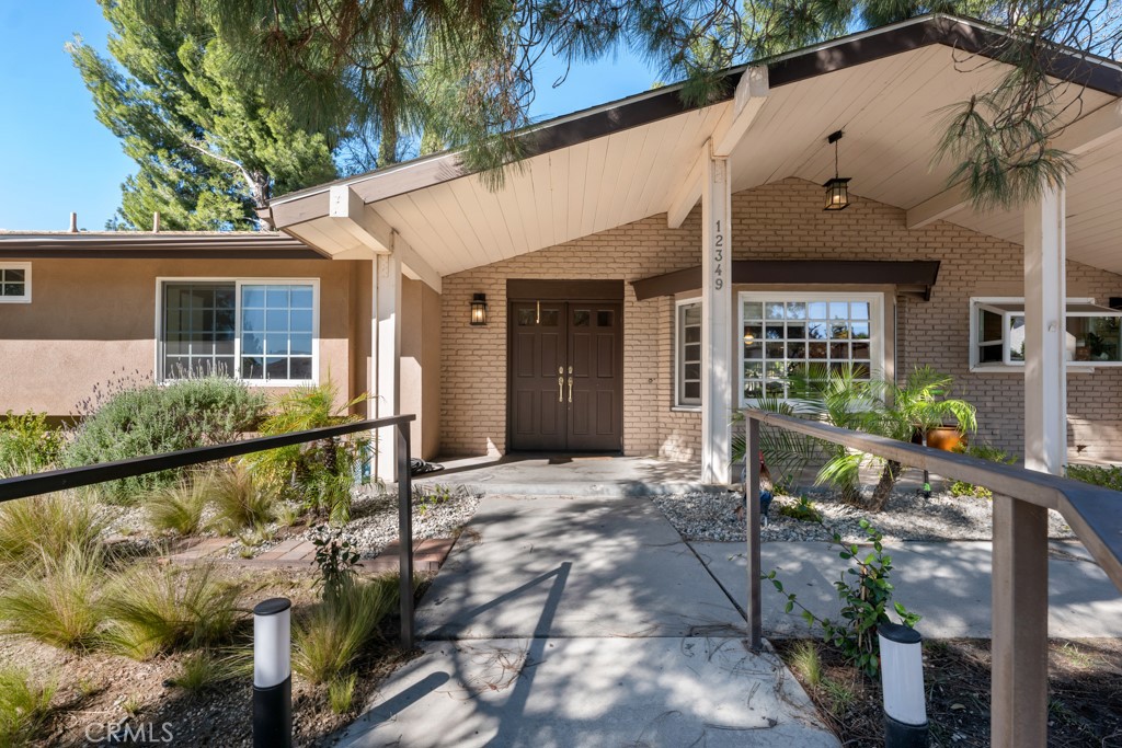 Nestled in the highly sought-after Knollwood Country Club Estates, this beautiful single-story estate offers 4 bedrooms, 3 bathrooms, 2,687 sq ft of living space, and sits on a rare 0.38-acre flat lot surrounded by tall, lush trees that create a private and tranquil setting, with a backyard ready for your vision. Stepping inside, the home is filled with abundant natural light and showcases recessed lighting and beautiful hardwood white oak flooring throughout. A welcoming foyer with a coat storage closet opens to a spacious open floor plan featuring vaulted ceilings and a wood-burning stove fireplace. The formal dining area showcases bay windows overlooking the front yard. The kitchen flows seamlessly into the living room and features large granite countertops, countertop seating, abundant cabinetry, a farmer’s sink, and essential appliances. The living room offers excellent natural light from large windows facing the backyard, with a subtle architectural divider creating a sense of separation and defined living spaces, along with multiple venting French doors that open to the backyard patio for effortless indoor-outdoor flow. The private bedroom wing includes a large primary suite with French doors to its own patio, an ensuite bathroom with dual vanity, soaking tub, walk-in shower, and an expansive custom walk-in closet featuring two separate rooms, skylights, and direct backyard access. Two guest bedrooms share a Jack-and-Jill bathroom, ideal for siblings or shared living, while the third bedroom across the hall is well-suited for an office or guest suite. The full hallway bathroom includes a walk-in shower, linen closet, and stackable washer and dryer space for added convenience. The front yard features drought-resistant landscaping with decorative rocks and pebbles, along with a walkway leading to a spacious side yard area positioned at the front side of the home, providing additional usable outdoor space. The backyard presents exceptional potential and serves as a blank canvas for the next owner, offering a large covered patio, side patio, access to the attached two-car garage, and an expansive flat yard ready for a buyer’s dream development. Ideally situated in Granada Hills, the property at 12349 Kenny Drive enjoys close proximity to Knollwood Country Club, nearby hiking trails, and Granada Hills Town Center & Village for convenient shopping and dining. Don’t miss this opportunity in one of the community’s most desirable neighborhoods.