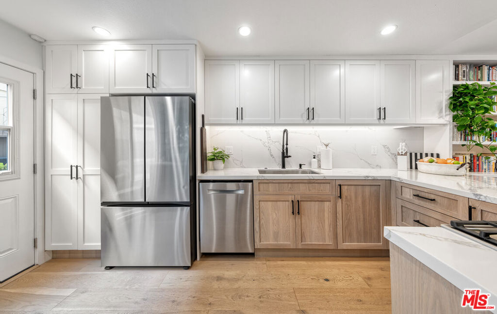 Stunning Designer Townhome, Full Custom Remodel in the Heart of Santa Monica. Discover this stunning and luxurious 3-bedroom, 2.5-bath designer townhome, fully reimagined with a complete custom remodel. Every inch has been thoughtfully curated with high-end finishes, blending modern elegance and functionality in a way that feels like your own private single-family home. Set within the esteemed Santa Monica-Malibu School District (Roosevelt Elementary, Lincoln Middle, and Santa Monica High) this residence is part of a charming, well-maintained, and lushly landscaped 7-unit complex with low HOA dues. Ideally located on a tree-lined street, you’ll enjoy walkable access to all of Santa Monica’s best offerings: boutique shopping on Montana, dining on Wilshire, Reed Park, Piper Preschool, the Fairmont, Rustic Canyon, Santa Monica Seafood, and of course, the Pacific Ocean just moments away. Inside, no expense was spared. The home showcases stunning hardwood floors, a gourmet custom kitchen with Bosch appliances, extensive built-in custom cabinetry, and sophisticated luxury lighting throughout. Spa-inspired bathrooms, two cozy fireplaces, and a library-style dining room add both comfort and character. With over 1,500 sq. ft. of living space, natural light floods through the home, highlighting its seamless indoor-outdoor flow. Multiple outdoor retreats invite year-round enjoyment of the coastal breeze including a private rooftop deck with sweeping city and mountain views, and additional patios with pet-friendly turf and upgraded drainage. The attached, direct-entry two-car garage features epoxy flooring and new custom storage cabinetry, making organization effortless. Outdoor storage cabinets and thoughtfully designed spaces add even more convenience. This rare townhome embodies the very best of Santa Monica coastal living: designer craftsmanship, a walkable beachside lifestyle, and a tranquil retreat in the heart of the city. Highlights: Full custom remodel with designer finishes throughout. Bosch high-end appliances & gourmet kitchen with custom cabinetry. Luxury lighting fixtures & extensive built-ins for maximum storage. Two fireplaces and over 1,500 sq. ft. of light-filled living space. Private rooftop deck with mountain & city views. Direct-entry 2-car garage with epoxy floors & built-in cabinetry. Located in the Santa Monica-Malibu School District, minutes to Montana Ave., Wilshire, Reed Park, brand new Equinox gym with rooftop pool, new Vons, Promenade, The Proper Hotel, and the beach