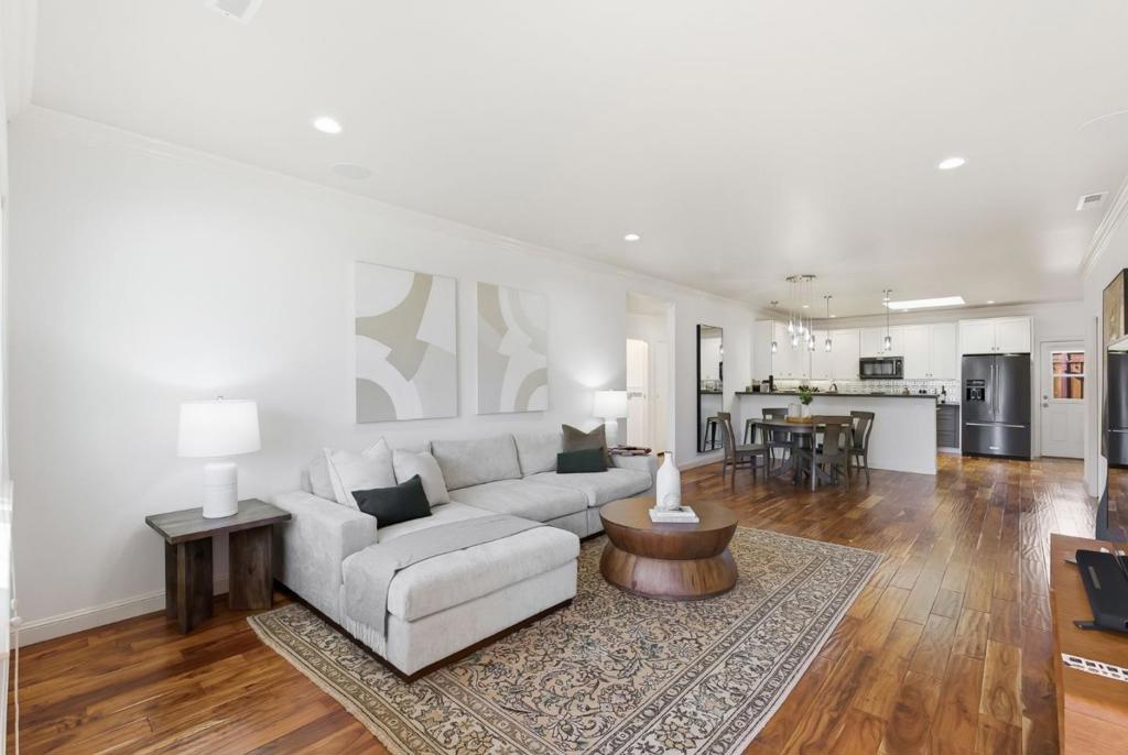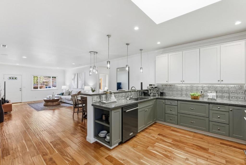 Meticulously maintained and beautifully remodeled home in the desirable Woodside Plaza neighborhood of Redwood City. This home shows pride of ownership throughout and features Acacia hardwood flooring, crown molding, and recessed lighting. The gorgeous kitchen offers abundant counter space, custom cabinetry, and stainless steel appliances. The primary bedroom opens to a private and serene backyard. Remodeled bathrooms are bright and inviting, with the primary bath featuring a jetted tub, open shower, and cathedral ceiling. A convenient ¼ bathroom is located next to the garage and laundry area. The backyard includes a paved patio, spacious lawn area, and a charming shed known as the Margarita Bar. The garage features high ceilings designed to accommodate a car lift. A clean and well-insulated attic space of approximately 960 sq. ft., with ceiling heights exceeding 7 feet at the highest point, offers excellent storage or creative possibilities. Air conditioning and solar provide year-round comfort and energy efficiency. Conveniently located near shopping, restaurants, schools, and major commute routes.