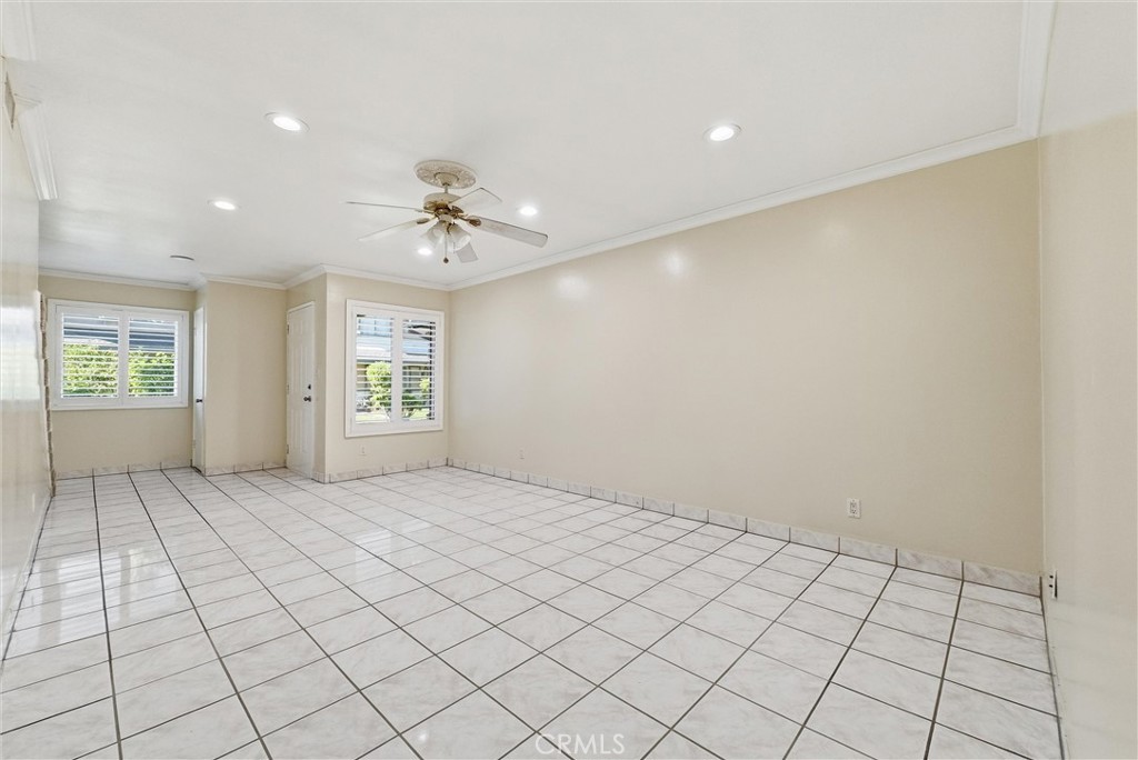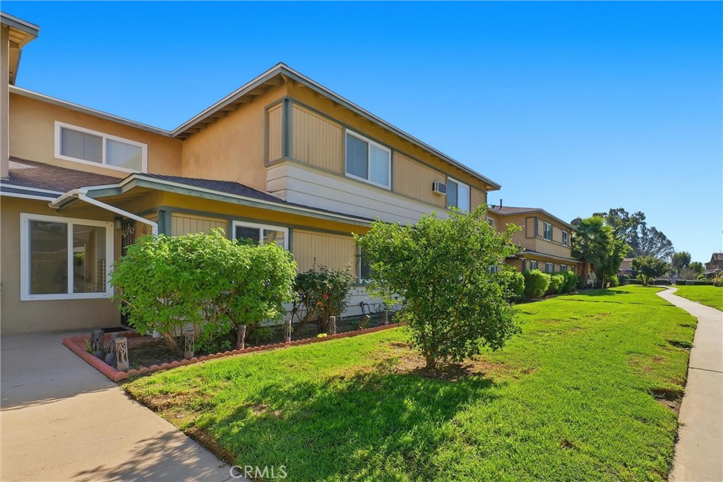 Welcome to this upgraded 4- bedroom, 2- bath, 2 story residence located in a sought after guarded community offering pool for family entertainment. Thoughtfully designed floor plan incudes 1 bedroom & bath perfect for an extended family or a guest. Home provides Central air (newer) , fans in all bedrooms. The home showcases elegant tile flooring down stairs and anew carpet on staircases & bedrooms upstairs, new interior painting, recessed lights, granite counters in kitchen, energy efficient double pane windows with classic wooden shutters., Living room with crown molding. Mirror closet doors enhances in upstairs bedrooms, while abundant natural light fills the home creating a bright & welcoming atmosphere. 2 car attached gorge with auto opener and direct access to the home is an added convenience. Home also offer a side patio of the garage for extra space. Community is well planned, clean, creating a great demand. Home is close to shops, freeway,& entertainment.