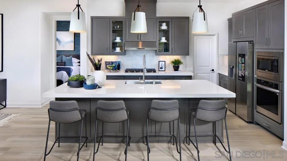This two-story home for ages 55 and better features plenty of shared and private spaces. Near the entry is a bedroom suite with a private bathroom, as well as a powder room accessible to both guests and residents. A den provides improved versatility on the first level, just before the open layout shared between the Great Room, kitchen and dining room that opens to a covered California Room. The owner’s suite is also on the first level with a large bathroom and walk-in closet. The second level features a large bonus room and additional bedroom and bathroom. Junipers is a gated master-planned community for active adults aged 55 and better that combines resort-style living with a top-notch location in San Diego, CA Woodlands is a collection of new single-family homes now selling in Junipers’ gated master-planned community in San Diego, CA for active adults aged 55 and better. This collection offers some of the largest home designs available at the masterplan including one and two-story floorplans, all featuring first-floor owner’s suites. Residents enjoy an onsite recreation area with a swimming pool, spa, fitness center, pickleball court, parks and more. The community is conveniently located near local shopping options, such as Costco and Starbucks, and I-15 for easy commutes. Photos or renderings may be of the Model Home and not the actual home.