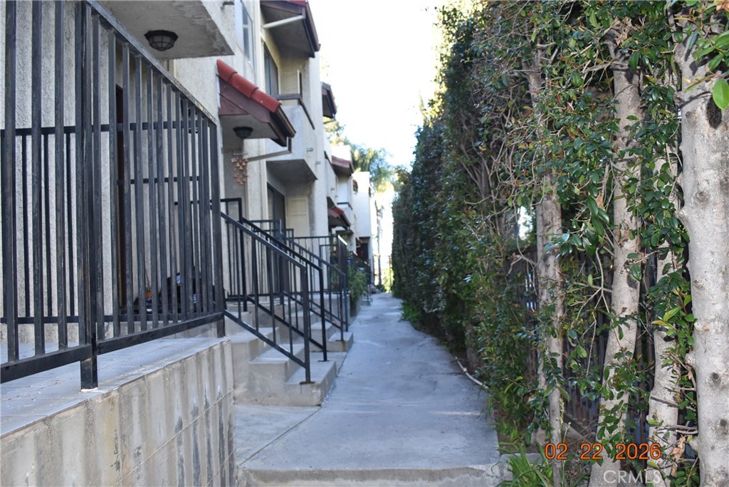 Two sister buildings with a total of 12 units. Security driveway gate leads to double garages, and back to grass area and community pool. Security gate at walkway to the front door. Property is on the right side of the complex. Front door to the living area with a gas fireplace and wet bar. Formal dining area off the living room. Kitchen has newer gas range and microwave, dishwasher and refrigerator. Breakfast area at the end of the kitchen. Door down to the double garage with 1 of 2 Stairchairs (can be removed if not wanted). 2nd Stairchair to the upstairs bedrooms. Primary bedroom has sliding glass door to a balcony, walk in closet and full bath. 2nd bedroom has mirrored closet door. Hall bath has tub/shower. 1/2 bath downstairs. House is a fixer.