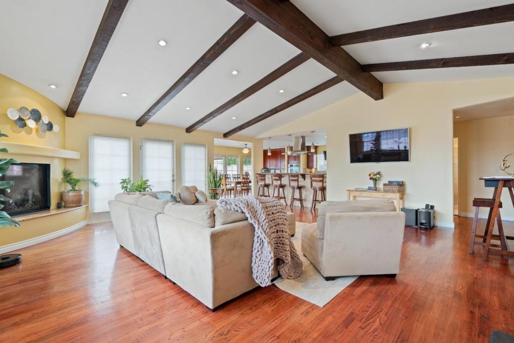 This is a 4 bedroom, 2 1/2 bth well designed home from the studs to the high beam ceiling, is situated in beautiful Seaside on the Monterey Peninsula.The residence spanning 2302 sq ft offering a comfortable and inviting atmosphere. The kitchen is a Chef’s dream equipped with solid granite countertops, gas stove,oven,microwave,new dishwasher, new refrigerator, and garbage disposal, perfect for culinary creations. With hardwood flooring throughout the home exudes warmth and elegance.Cozy up by the fireplace,BBQ area for entertaining, enjoy the stone patios formal fountain,tile roof with outdoor bar and sink, tv. There is also a permitted additional room downstairs next to the garage with private bathroom, could be an office.Approved plans for a ADU and expansive parking approximately multiple cars or RV, Boat,Trailer. Sit quietly and enjoy the palm trees and decorated ambiance of this perfect paradise and casita for memorable parties with family and friends. Enjoy the Monterey Peninsula lifestyle and luxury world class Pebble Beach Golf courses amazing dining, beaches, Ft Ord trails and biking, beaches with incredible breathtaking sunsets.College students can thrive at CSUMB Monterey Bay.