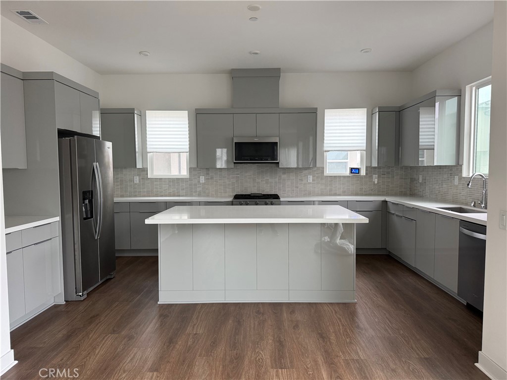 LUXURY LEASE IN GATED 100 WEST COMMUNITY BY TOLL BROTHERS Built in 2023, this modern townhome offers 4 bedrooms and 3.5 bathrooms with an open-concept floor plan and contemporary design throughout. Features include wood-like flooring, gourmet kitchen with center island and stainless steel appliances (refrigerator included), ground-floor bedroom with full bath, and a spacious primary suite with walk-in closet and luxury bath. Private rooftop deck, 3rd-floor laundry with washer/dryer, central A/C & heating, solar system (landlord covers solar), EV-charge ready, new zebra blinds, and 2-car attached garage with direct access. Community amenities include pool, spa, BBQ areas, and dog parks. Prime location near Disneyland, Honda Center, Anaheim Packing District, shopping, dining, and easy access to 5/22/57 freeways.