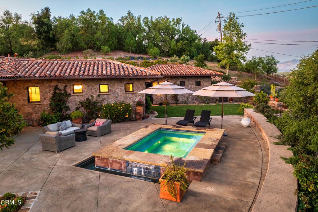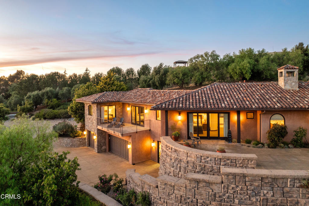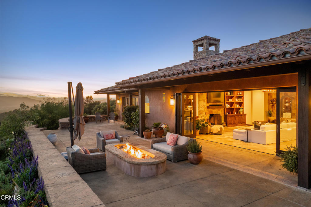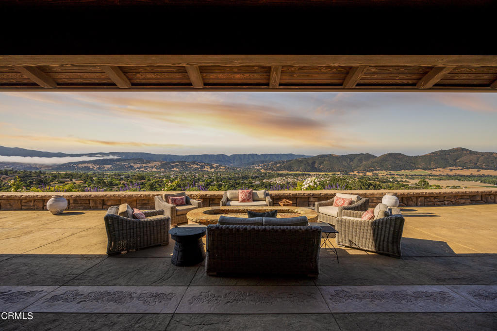 Be the first to watch as the fog slowly rolls in and cradles the Valley. Welcome to ”First Fog Ranch”, with breathtaking views and incredible sunsets! Relaxed country elegance, a stunning estate of the highest quality constructions and craftsmanship, with high end finishes that perfectly blends elegance with serene ranch living. 6.27+/- acres, offering both privacy and versatility, boutique Syrah vineyard, 5,456+/- sq. ft. of refined living space, featuring 4 spacious bedrooms and 4.5 luxurious bathrooms. The heart of the home is the impressive living room with grand stone fireplace and a wall of folding glass bi-fold doors that open entirely to the outdoor patios with umbrellas, a cozy fire pit and a splash pool. The gourmet kitchen is a chef’s dream, equipped with an expansive island, breakfast bar, walk-in pantry, wine refrigerator, and a high-end Wolf range. For wine enthusiasts, the temperature-controlled wine cellar provides ample space for your collection, accommodating up to 780 bottles. Wander the many pathways that lead to magical landscaped destinations. Additional amenities include an attached 3-car garage, a detached 1-car garage, a separate workshop in an area that’s private with views, just waiting for your future barn or ADU. Designed and originally built for a celebrity artist, come and experience the epitome of luxury and tranquility at First Fog Ranch, where every detail has been thoughtfully designed to create an unparalleled living experience.