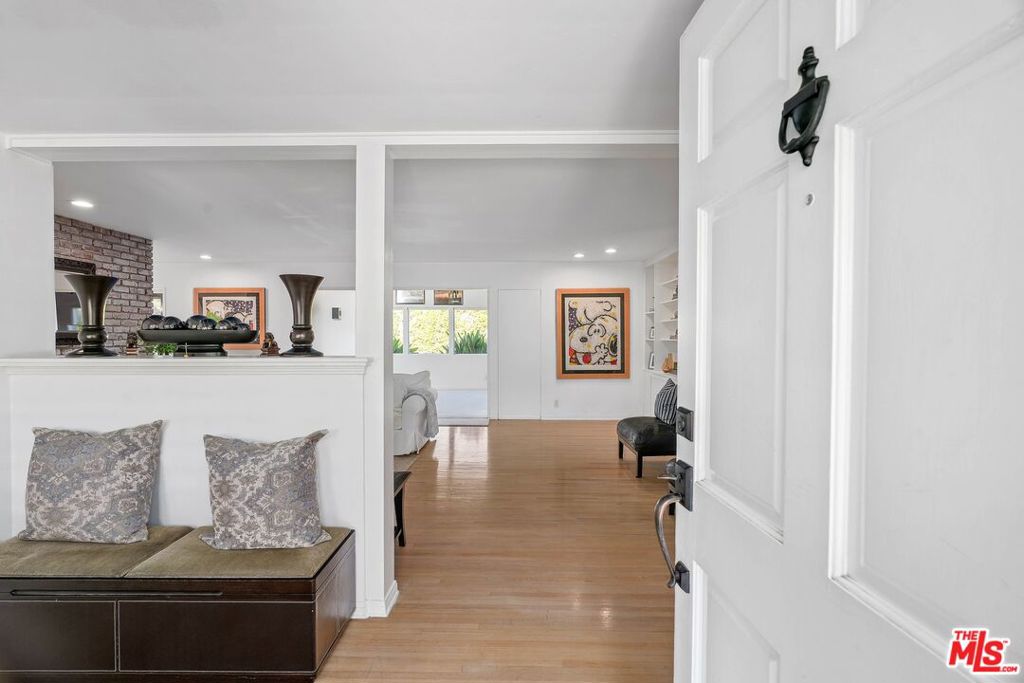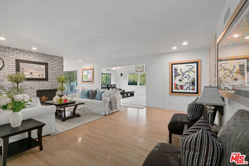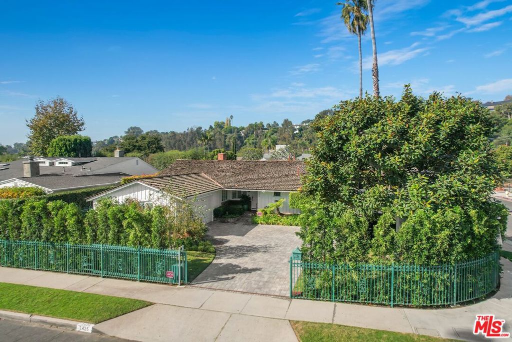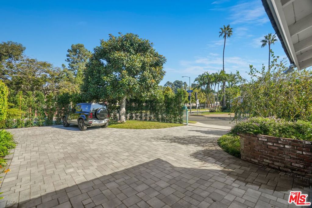 Situated on a generous corner lot in Brentwood’s sought-after Polo Fields neighborhood, this home stands out with its timeless appeal and modern updates. Upon entering, find an inviting living room with a brick gas and wood-burning fireplace and gleaming hardwood floors that extend throughout most of the residence. The family room is a highlight, featuring high vaulted beamed ceilings and large windows that flood the space with natural light, creating a bright and airy atmosphere. The dining room is flanked by glass sliding doors to the backyard and the completely remodeled kitchen. Both stylish and functional, the updated kitchen boasts chic marble backsplash and countertops with a waterfall edge, a professional-grade Thermador double oven range and hood, porcelain tile floors, an eat-in area, and top-of-the-line stainless steel appliances — ideal for both everyday meals and entertaining. The home includes three spacious bedrooms and two full bathrooms, inclusive of the luxurious primary suite with dual closets, offering comfort and flexibility for a variety of lifestyles. Outside, lush, mature hedges surround the yard creating a private sanctuary. A built-in BBQ with beverage fridge makes al fresco dining effortless, while ample green space is ideal for outdoor activities or the potential addition of a pool. Other notable features include a laundry room with sink, a fully gated property, a stylish paver driveway with uncovered parking for five vehicles, and an attached 2-car garage with direct access to the home’s interior. Set in a highly desirable location moments from premier local amenities like the Riviera Country Club and Brentwood Country Mart, this home seamlessly blends classic comfort with modern sophistication, epitomizing the best of Southern California living.