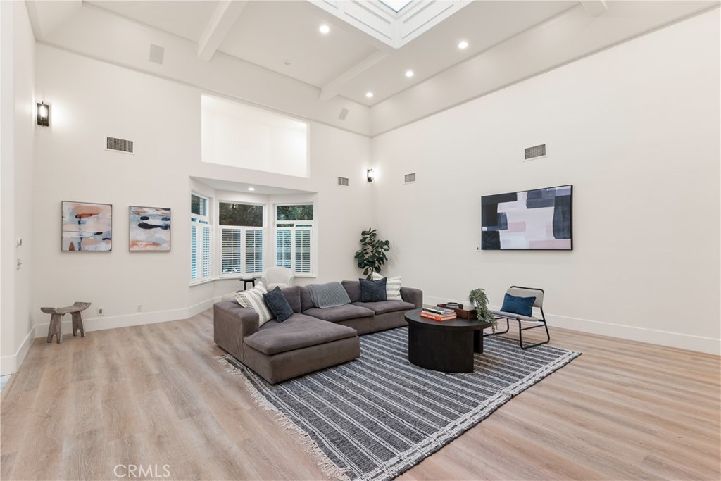 Welcome to 14713 Valleyheart Drive – where modern sophistication harmonizes with the timeless charm of Sherman Oaks. This exceptional residence offers 5 bedrooms, 3.5 baths, and over 5,000 square feet of refined living space, set on an 8,816-square-foot lot. Step inside to discover soaring ceilings, exposed wood beams, and an abundance of natural light cascading through a dramatic skylight. Completely reimagined, the home now showcases a modern open-concept design, curated with designer details and exquisite finishes throughout. Anchoring the main living area, a striking double-sided charcoal porcelain fireplace seamlessly connects the living and dining spaces, setting the tone for both comfort and sophistication. The chef’s kitchen is a true showpiece, featuring state-of-the-art Sub-Zero and Wolf appliances, a marble backsplash, an expansive center island, and an inviting breakfast nook perfect for morning gatherings. The primary suite is a private retreat – complete with its own skylight, fireplace, walk-in closet, spa-inspired bath, and a serene balcony overlooking the backyard. Step outside to your personal oasis: a sparkling pool, relaxing jacuzzi, and built-in BBQ, all designed for effortless entertaining and California living. A recently converted 900-square-foot basement adds an impressive entertainment area, ideal for a media room, gym, or play space. Perfectly located near Ventura Boulevard, fine dining, and shopping, within the sought-after Kester Avenue Elementary School District, this home embodies convenience and contemporary luxury.