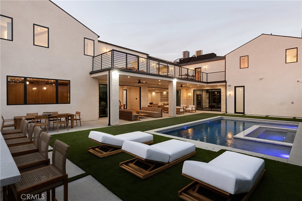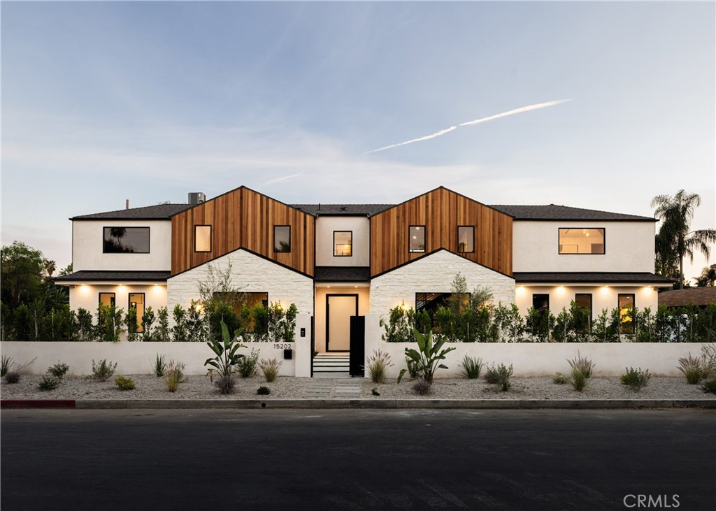Situated behind private gates on a sprawling 9,000+ sq. ft. corner lot, this newly constructed architectural estate boasts an attached 1-bed, 1.5-bath ADU. Designed for modern living, the open-concept main level flows seamlessly from the spacious living and dining area into the gourmet chef’s kitchen, outfitted with professional-grade appliances, sleek custom cabinetry, a massive island and walk-in pantry. Two oversized sliding glass doors effortlessly extend the living space to the covered patio, creating a seamless indoor-outdoor living experience. The backyard is a true entertainer’s retreat, showcasing a resort-style pool and spa, fully equipped outdoor kitchen and privacy hedges that surround the property. Completing the main level is an ensuite bedroom and chic powder bathroom with a one-of-a-kind stone sink. On the upper level, you’ll find four generously sized ensuite bedrooms, a dedicated laundry room and spacious loft area that leads out to an expansive balcony. The luxurious primary suite features a custom walk-in closet and sumptuous ensuite with a soaking tub, large glass-enclosed shower and double vanity. The ADU offers exceptional versatility with its own private entrance, a living room, full kitchen, one bedroom and two bathrooms, perfect for guests, extended family or as additional living space. Further highlights include high ceilings throughout, a two-car garage and fully integrated smart home system that manages lighting, climate, audio and security. Ideally located within the top-rated Kester Avenue Elementary School District, just moments away from Ventura Boulevard’s premier shops and restaurants, as well as the Sherman Oaks Galleria.