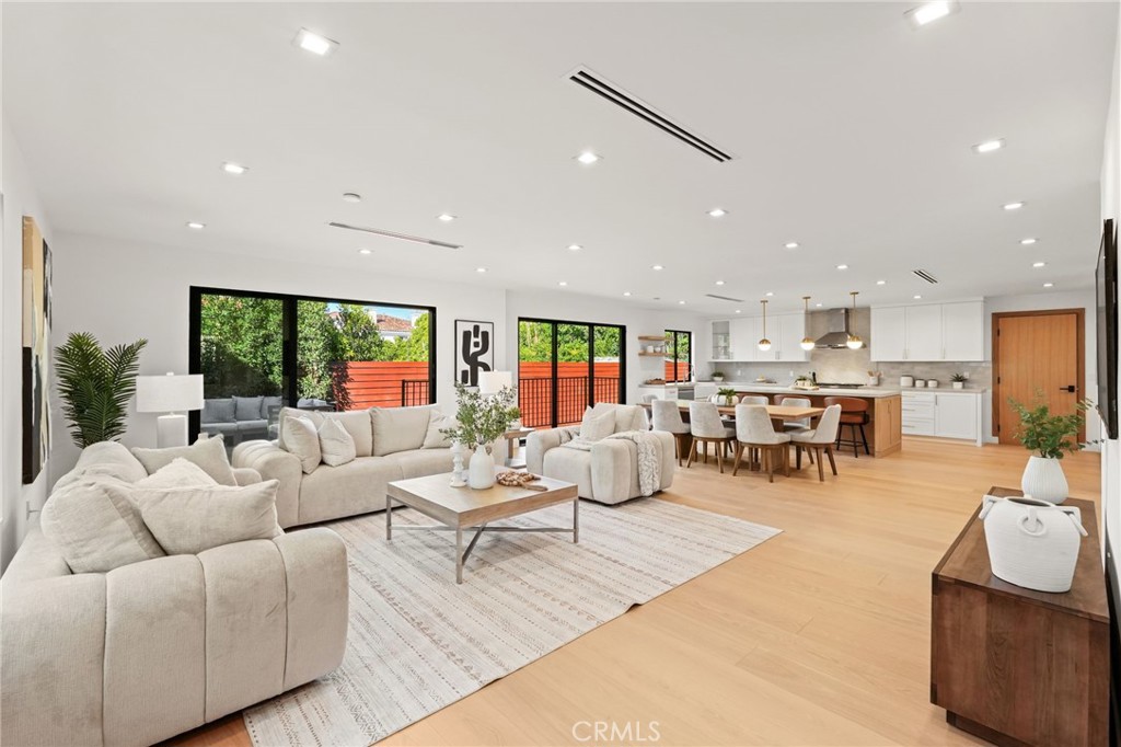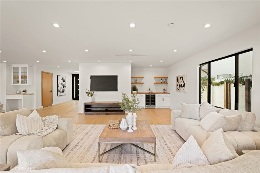 Situated on a quiet tree-lined street in one of Encino’s most coveted neighborhoods, this turnkey single-story home has been beautifully remodeled and completely reimagined. Natural light floods the open-concept floor plan, highlighting the wide-plank European oak hardwood floors and lofty ceilings found throughout. At the heart of the home, the designer chef’s kitchen features a stunning 8 foot wide Taj Mahal island, bespoke cabinetry and top-of-the-line Bosch appliances. Thoughtfully designed for both everyday living and effortless entertaining, the kitchen flows seamlessly into the spacious living and dining room. A chic bar area with a beverage fridge adds an extra touch of convenience, while oversized sliding glass doors open to reveal a walk-out deck, expanding your living space outside for a seamless indoor-outdoor living experience. Mature ficus trees provide privacy to the serene backyard retreat, which is complimented by low-maintenance artificial turf. The home offers three generously sized bedrooms, highlighted by a luxurious primary suite that boasts a custom walk-in closet and spa-inspired bathroom, complete with a soaking tub, glass-enclosed rainfall shower, double vanity and smart toilet. Additional features include a stylish powder bathroom, state-of-the-art security system, Ecobee smart thermostat, high-efficiency 5-ton heat pump system, brand-new aluminum windows, a two-car garage with epoxy flooring and premium fixtures throughout. Located within the top-rated Hesby Oaks School District, this property is just moments from Ventura Boulevard’s renowned shops and restaurants, and its prime central location allows for easy access to everything the Valley and the Westside have to offer.