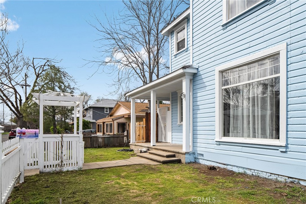 Absolutely adorable and full of storybook charm, this beautiful home sits proudly on a corner lot just blocks from Downtown Oroville, where you can enjoy local dining, cozy coffee shops, and charming boutiques all within minutes of your front door. A classic white picket fence welcomes you to the freshly painted exterior and inviting front porch — the perfect place to relax and take in the neighborhood. Step inside and you’ll immediately appreciate the character and craftsmanship throughout, from the detailed stair railings and transom windows to the French doors, built-in features, and elegant coved ceilings. The formal entry showcases tall ceilings and sets the tone for the spacious layout. Through French doors, you’ll find an expansive formal living room that flows seamlessly into an additional family room featuring an electric fireplace — offering wonderful flexibility for entertaining or everyday living. The formal dining room is a standout with its built-in buffet cabinet and direct access to the back porch. The updated kitchen blends timeless style with modern convenience, featuring granite countertops, new cabinetry, stainless steel appliances, a beautiful backsplash, and a charming dining nook that circles back to the family room for an easy, connected feel. Upstairs continues to impress with three bedrooms and an updated bathroom. The primary suite includes an attached flex room — ideal as a walk-in closet, exercise space, nursery, or quiet reading retreat. Recent updates add even more value, including fresh interior paint, new tile and luxury vinyl plank flooring throughout, updated light fixtures, new knobs and handles, new security doors, dual pane windows through most of the house and a new garage door. Six new mini-split systems are on order and will be installed for added comfort and efficiency. There is also a partially finished basement offering additional storage space. Outside, you’ll find a one-car garage with laundry and a backyard ready for your personal vision. Charming, spacious, and ideally located — this is a rare opportunity to own a piece of Oroville history with all the modern touches already in place.
