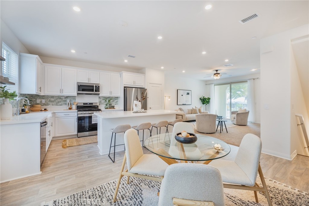 Welcome to your modern oasis in the highly desirable Sunset at Melrose community! This beautifully upgraded 3-bedroom, 2.5-bath townhome also features a versatile bonus office which provides the ability to work from home, for creative projects, or a quiet retreat. The open-concept floorplan is filled with natural light and showcases luxury quartz countertops, a newly installed designer backsplash, and sleek laminate flooring. The kitchen flows seamlessly into the spacious living area, which opens up to an expansive balcony which is ideal for morning coffee, evening sunsets, or entertaining guests. Designed with both convenience and sustainability in mind, the home includes fully paid-off solar panels and installed EV charging plug in the attached two-car garage. Upstairs, the primary suite offers a peaceful escape, while two additional bedrooms provide plenty of space for family or guests. The additional office adds valuable flexibility for today’s evolving lifestyle needs. Located just minutes from beaches, shopping, dining, and freeway access, and with access to community amenities like a pool, spa, playground, and picnic areas, this home truly blends comfort, efficiency, and coastal charm. Move-in ready and thoughtfully designed, this is contemporary living at its best.