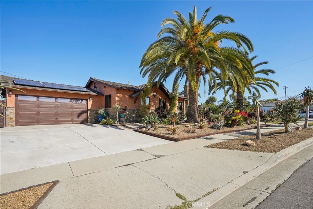 If you’re tired of cookie-cutter homes and want something truly custom, upgraded, and built to last, this Valinda stunner is the one you’ve been waiting for. This 3-bedroom, 2-bath single-family pool home has been extensively improved with high-ticket upgrades that matter most to buyers. Starting at the core: the home features a new Presidential roof, brand-new copper plumbing throughout, and a new main copper line run from the street to the house—huge peace-of-mind improvements that are rarely done and costly to replace. Add in paid off solar panels, a heavy-duty upgraded electrical panel, and a tankless water heater, and you’re getting a home that’s efficient, modern, and future-ready. The curb appeal is next-level. Custom succulent and pebble-rock landscaping, framed by railroad ties, is accented by two massive date palm trees and new colored cement walkways. The exterior is finished in a smooth Santa Barbara terracotta stucco, with matching block walls, BBQ island, and elegant stonework across the front of the home for a high-end, custom look. Inside, comfort and style come together with double-pane Milgard windows (bronze-tinted to keep the home cool), recessed lighting, tile flooring, hardwood bedroom floors, ceiling fans, and extra insulation in the walls and attic. The kitchen is a standout, featuring updated cabinetry, granite countertops, a center island, and a massive separate refrigerator and freezer built seamlessly into custom cabinets. Step into the backyard and you’ll see where this home truly shines. A custom heated sports pool and oversized spa anchor the space, complete with two-tone Pebble Tech, custom tile, and a spa designed for up to 12 people with an upgraded air pump for extra pressure and bubbles. All backyard cement work was redone with re-bar reinforcement, includes a built-in drain system to prevent flooding, custom seating, and planters. Entertain with ease at the fully equipped BBQ island granite top, built-in BBQ, burner, refrigerator, and a dedicated gas line so propane is never needed. Additional highlights include RV-capable heavy-duty driveway, security system, a large storage shed with matching Presidential roof, central HVAC plus a QuietCool whole-house fan and more. This is not a flip. This is a thoughtfully upgraded, pride-of-ownership home built for comfort, entertaining, and long-term value. Homes like this don’t come around often-especially not with this level of craftsmanship and investment