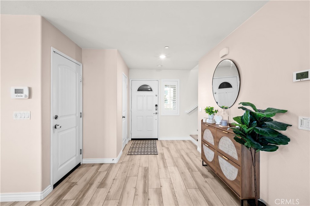 Welcome to this beautifully upgraded 3-bedroom, 2.5-bath home built in 2017, where modern design meets everyday comfort. From the moment you step inside, you’ll notice the stylish finishes and thoughtful upgrades throughout. The heart of the home is the stunning kitchen, featuring sleek quartz countertops, a designer backsplash, and an ideal layout for both entertaining and daily living. Elegant luxury vinyl flooring runs throughout, complemented by upgraded 5-inch baseboards for a clean, modern look. Windows finished with classic boxwood shutters bring in natural light while adding timeless charm. Step outside to your private backyard retreat, complete with a covered Alumawood patio, LED lighting, and ceiling fans—perfect for year-round entertaining. A gated dog run with low-maintenance turf makes this home as functional as it is inviting. Additional highlights include solar panels, a whole house fan for energy efficiency, and a high-end security screen door designed for superior durability and peace of mind. The garage is equipped with convenient overhead storage racks, providing ample space to keep everything organized. Modern, efficient, and move-in ready—this home offers the perfect blend of comfort, style, and practicality. Don’t miss this incredible opportunity!