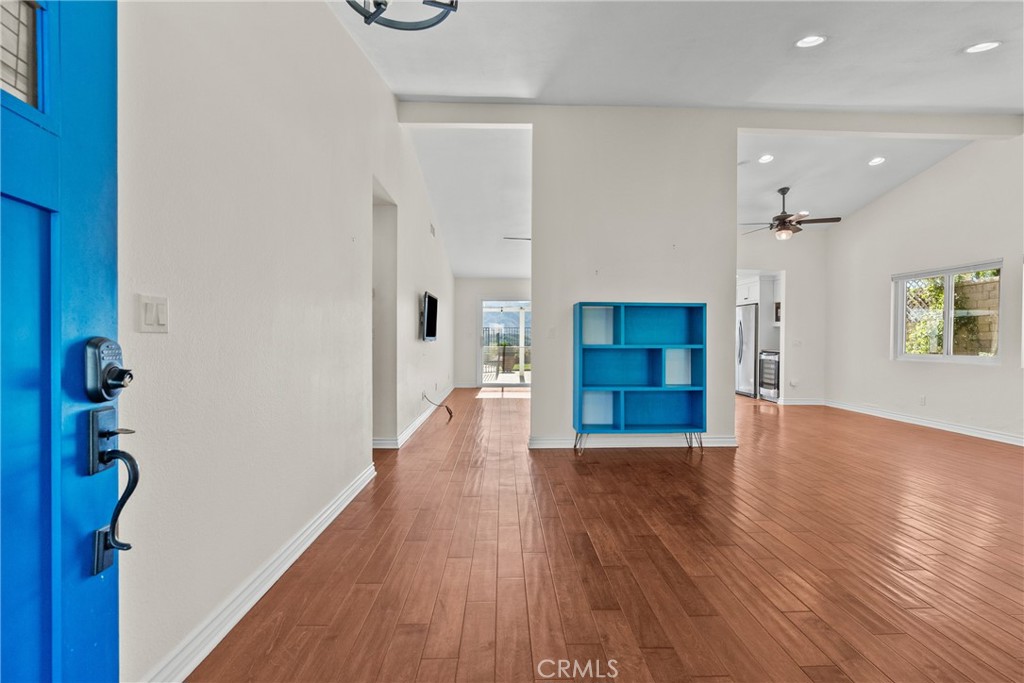 OPEN HOUSE SUNDAY 1 PM – 4 PM. Beautifully remodeled single-story, 4-bedroom, 2-bath pool home with stunning mountain views! This bright, open floor plan connects the living, dining, and family rooms—perfect for everyday living and entertaining. The updated kitchen features granite countertops, stainless steel appliances, a wine refrigerator, and picturesque views. Both bathrooms have been tastefully upgraded with modern vanities and finished showers or tubs. The spacious primary suite includes a walk-in closet and direct access to the backyard. Step outside to a private oasis with a sparkling pool and spa, low-maintenance landscaping, and breathtaking mountain vistas—ideal for relaxing or hosting gatherings. Additional highlights include direct access to a 2-car garage, a newer roof, windows, HVAC with updated ducting, water heater, and solar system for energy efficiency. No HOA or Mello-Roos. Conveniently located near the 14 freeway, grocery stores, shopping, and schools.