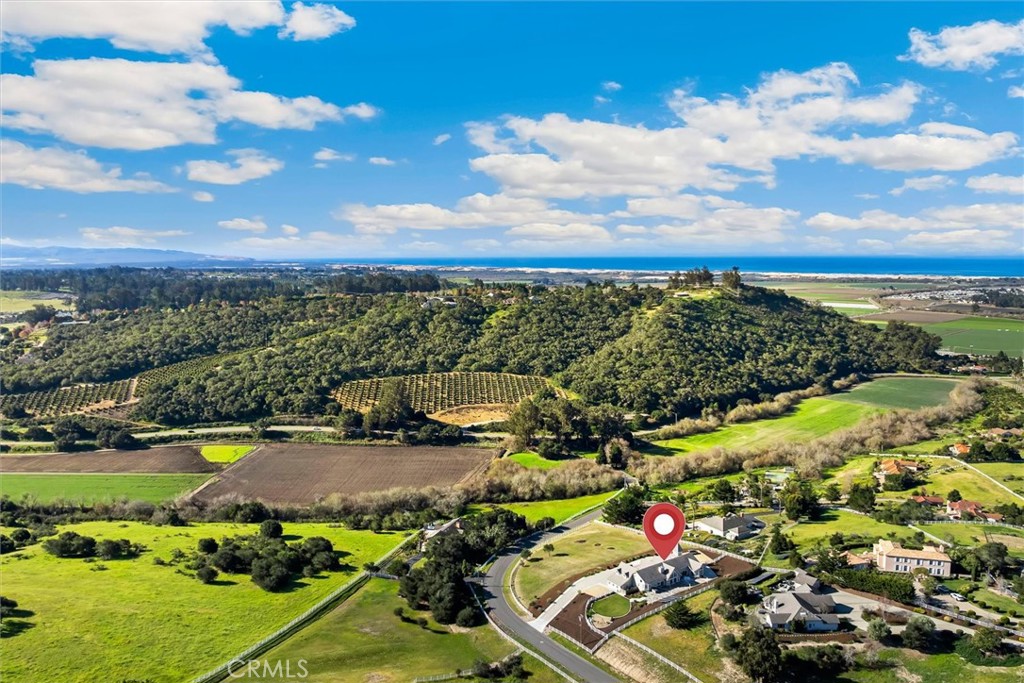 Nestled within the gated community of Falcon Ridge Estates in Arroyo Grande, 172 Falcon Crest Drive is perched atop a recently landscaped 2.65 acre lot and overlooks a lush valley and glimmers of the Pacific Ocean in the distance. The single story 3,769 sqft main residence features 3 spacious bedrooms, 3 bathrooms, and a versatile bonus room that could easily serve as a fourth bedroom, office, or media space. Cathedral ceilings soar throughout the home, complemented by expansive windows that flood the interior with natural light. A wood burning fireplace centers one of the two living rooms, and air conditioning allows for year round comfort. Nearly the entire home was thoughtfully renovated in 2023, including a new roof, wood floors, fully remodeled bathrooms, tankless water heater, new furnace, and most other interior/exterior finishes. One of the home’s most captivating features is the expansive 1,700+ sq ft heated wraparound porch. Above the large three-car garage, a private 1,100 sqft guest house (not included in the 3,769 sqft of main residence) provides incredible flexibility and value. Complete with its own kitchen, bathroom, living room, and bedroom, it’s ideal for family, guests, or potential rental income. Additional highlights include owned solar panels for energy efficiency and sustainability, generous parking, and a fully fenced playground space for littles or pets. This is a rare opportunity to own a unique turnkey property offering space, privacy, and stunning Central Coast views—all just a few minutes from the charming Village of Arroyo Grande, Pismo Beach, and San Luis Obispo.