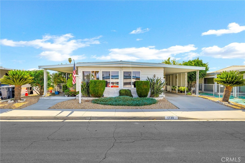 Welcome to 1735 San Marcos in the 55+ community of Sierra Dawn South, where you own the land and enjoy an active senior lifestyle. Offering 2 bedrooms, 2 bathrooms, and 1,440 sq ft of living space, this 1975-built home combines generous square footage with functional design and an excellent location close to the clubhouse. An inviting open front porch welcomes you into the home, leading to a spacious living room filled with natural light and enhanced by newer dual pane windows throughout. The dining area features a built-in china cabinet, adding both charm and practical storage. The kitchen is well-appointed with a center island, abundant cabinetry, and ample counter space, opening to a flexible den area that can easily serve as a home office or hobby room. Both bedrooms are good-sized and include overhead ceiling fans for comfort. At the rear of the home, an enclosed patio room provides additional usable space—ideal for relaxing, entertaining, or enjoying year-round versatility. Exterior highlights include a long covered carport with a storage area at the end, offering both convenience and functionality. Located close to the clubhouse, residents of Sierra Dawn South enjoy a vibrant senior community with numerous activities, social events, pools, fitness facilities, and recreational amenities. HOA dues are approximately $185 per month. A wonderful opportunity to enjoy affordable homeownership, active living, and the benefit of owning the land in one of Hemet’s established 55+ communities.