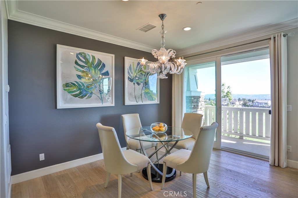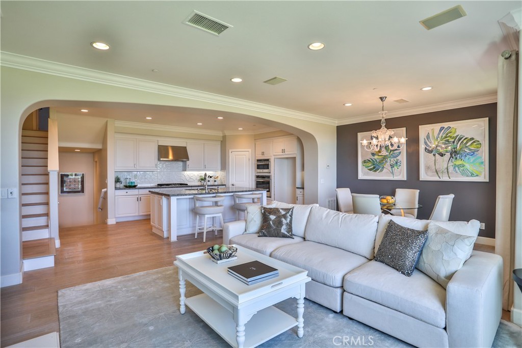 Spectacular views from this desirable townhouse located adjacent to Black Gold Golf Club. This thoughtfully designed 3-level home offers maximum privacy, with each bedroom featuring its own en-suite bath. Featuring 3 bedrooms and 3.5 bathrooms, the home is tastefully upgraded with hardwood flooring, crown molding, and custom window coverings throughout. The living room includes custom built-in cabinetry, while the gourmet kitchen boasts a center island and top-of-the-line appliances. The spacious primary suite offers a luxurious bath and a large walk-in closet. Located in the highly desirable Vista Del Verde community with amenities including pool, spa, clubhouse, and fitness center. Situated within an excellent school district.