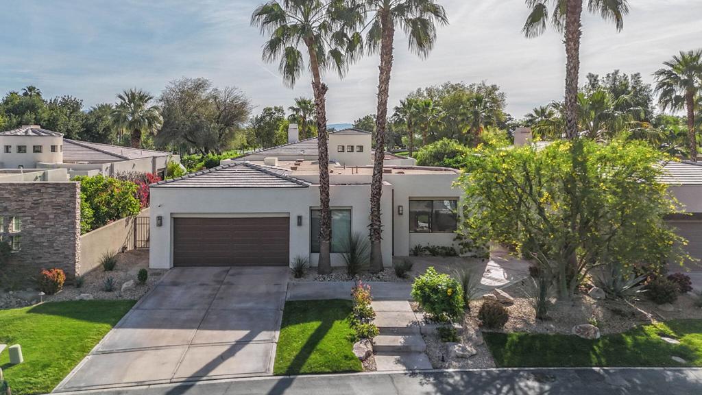 Beautifully reimagined and, contemporary free standing Mission Hills home on fee land, (you own). This stunning residence overlooks the Pete Dye Challenge Course and includes newer air conditioners, tankless water heater, whole house water filtration system, newly resurfaced pebble tec pool with expanded concrete patio for easy entertaining. Interior finishes include, French limestone floors, beautiful new hardwood custom cabinets, sub zero fridge and Wolf stove in gourmet kitchen. Primary suite includes a fireplace and has an attached spa bath. Property includes a casita with a cozy fireplace and bar area for your visiting friends and family, or a perfect office space. This Desert Home has it all