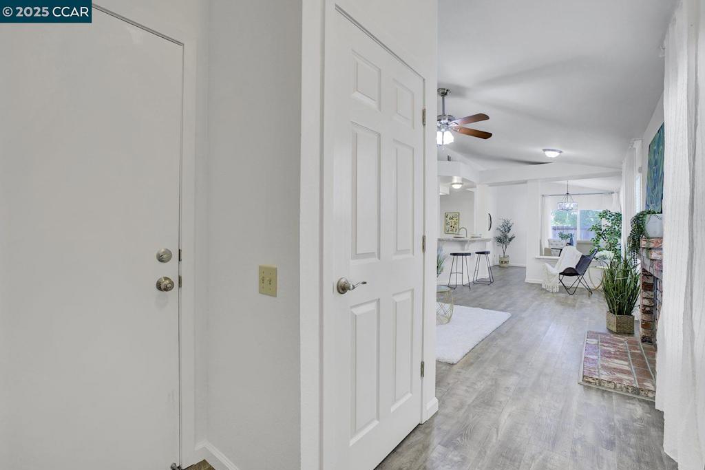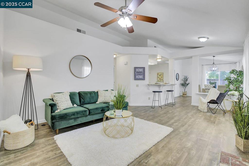This beautifully updated 3-bedroom, 2-bath single-story gem offers comfort, charm, and functionality all in one. The modern kitchen features granite countertops, crisp white cabinets, stainless steel appliances, a pantry, and a breakfast bar—perfect for casual meals or entertaining. The vaulted-ceiling primary suite is your personal retreat, complete with a custom-tiled shower. Enjoy the airy, open floor plan with spacious living and dining spaces. Fresh interior paint and stylish laminate flooring complete the inviting vibe. Step outside to a private backyard with no rear neighbors and direct Marsh Creek Trail access through your own gated entry—ideal for morning strolls or weekend adventures. The upgraded black-and-white checkered garage floor opens up creative possibilities for a studio, gym, or hobby space. Enjoy community perks like a swimming pool and playground, and take advantage of nearby Hwy 4, shopping, and restaurants. This home is ready to impress!