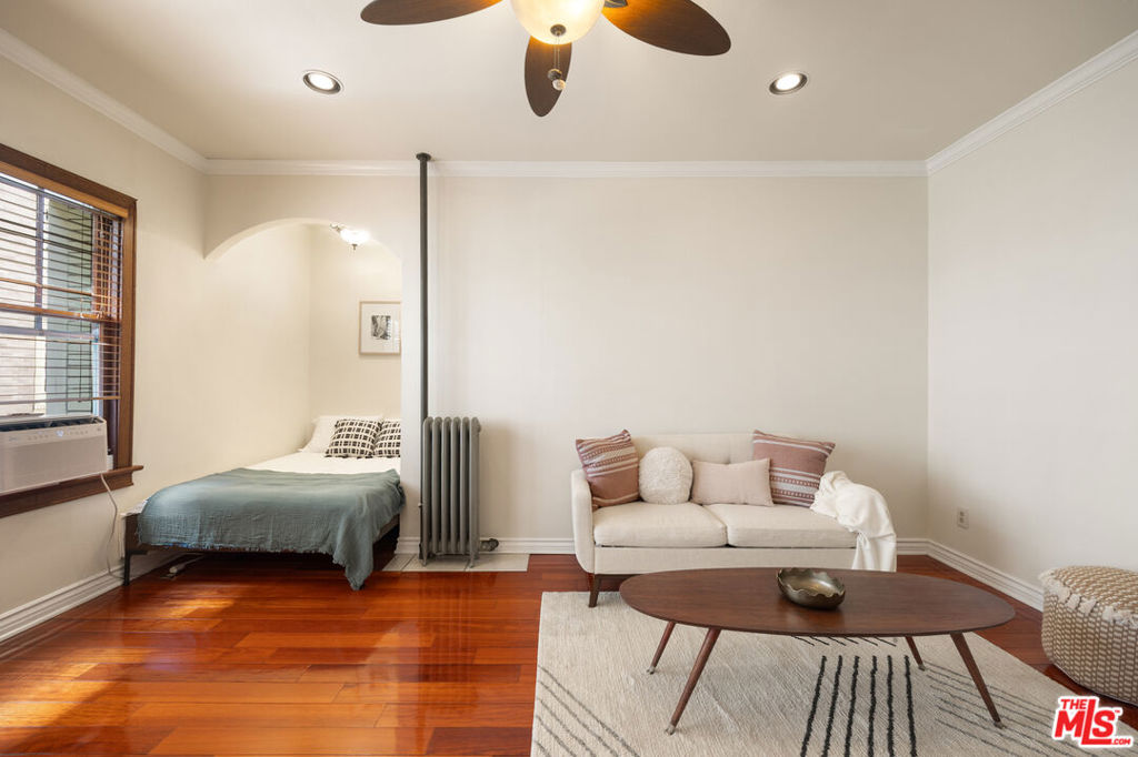Hey there nostalgia lovers! Welcome to a piece of LA history, an architectural Landmark, the Glen Donald Building. Built in 1923, time travel to old Hollywood glamour. Located west of downtown Los Angeles and close to MacArthur Park in the Westlake district. The turn-key condo is filled with turn of-the-century charm at every corner. Upon stepping into the unit, you are greeted with architectural elements such as an arch in the entryway, redwood floors, crown moldings and mahogany wood doors. Large windows with wood frames. They just don’t make ’em like this anymore. A cozy floor plan with a stylish bed alcove. No shortage of storage with 2 oversized walk-in closets with custom shelves and drawers. Facing the interior courtyard, the condo is quiet, bright, airy and efficient. The bathroom is all charm with vintage-style fixtures, a shower and soaking tub. A well equipped kitchen with a gas stove, microwave, fridge and cabinetry. Residents enjoy access to a secured courtyard entrance. Building amenities include a luscious courtyard, grand lobby with plenty of seating and baby grand piano. Downstairs you’ll find a recreational room with a lounge area and a ping pong table, a fitness room, community laundry room and bike storage. Langers Deli is a stones throw away. Located within close proximity to USC, Loyola Law School, Downtown L.A, K-Town and the Mid-Wilshire neighborhoods. Surrounded by public transportation, the MacArthur/Westlake Metro station is only 2 blocks away. Near pharmacies, shops, supermarkets ,restaurants, fast food and public parks. The HOA fee includes electric, gas, water and trash. While there is no parking associated with the sale of this condo, there are 2 parking lots nearby. Don’t miss this unique opportunity to own a piece of L.A. history.