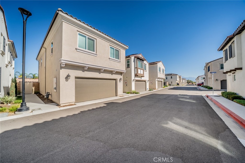 Welcome to this beautiful and peaceful community in the heart of Rialto! This modern two-story home offers 3 bedrooms, 2.5 bathrooms, and 1,549 sq ft of comfortable living space. The open-concept main floor features a bright great room, dining area, and a stylish kitchen with a large island, quartz countertops, white shaker cabinets and a pantry. Waterproof laminate flooring flows through the kitchen, living areas, and the upstairs laundry room, while all bedrooms include soft carpeting. Upstairs, the spacious primary suite features walk-in closet, dual sinks, a separate shower, and a soaking tub. Two additional bedrooms offer generous closet space, plus a versatile Loft ideal for an office or TV area. The laundry room is conveniently located near all bedrooms. The home includes an attached 2-car garage, a small but very cozy private patio—perfect for family gatherings. This home also features leased solar panels that provide Energy Efficiency and lower monthly utility costs. Ideally located near schools, parks, and shopping, including the Renaissance Marketplace, with easy access to the 210 and 10 freeways. Move-in ready and located in a desirable, fast-growing area—this one won’t last!