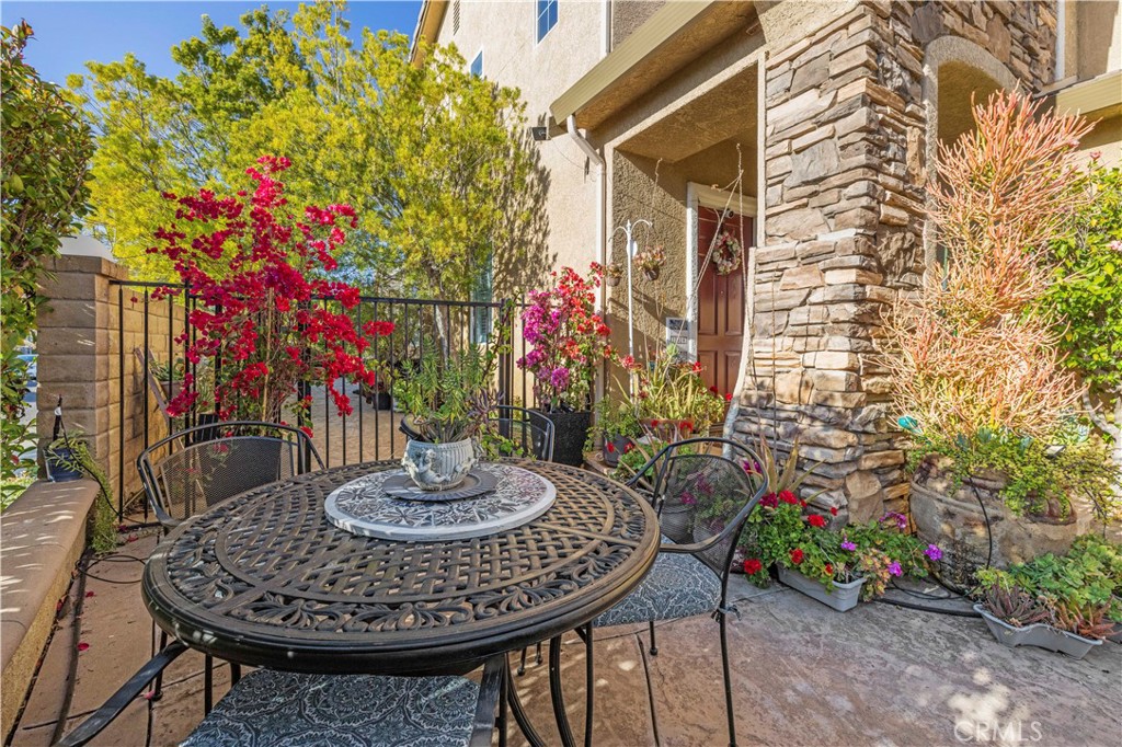 This immaculate and beautifully updated Canyon Ridge home has stunning curb appeal and shows light and bright with NO HOA or MELLO-ROOS! Your exterior has been refreshed with freshly painted garage door, shutters, rain gutters, and wood trim. It boasts 4 bedrooms, a downstairs bonus room/home office that could easily be converted to 5th bedroom, 3 bathrooms with quartz countertops, and sits on a cul-de-sac street on a corner lot with a large backyard. The stamped concrete takes you through the covered entryway where you’re greeted with high ceilings, crown molding, and a very spacious living room. Your open concept kitchen is a STUNNER boasting white quartz countertops, a large breakfast bar center island, mosaic tile backsplash, range hood, white cabinetry, a walk-in pantry, stainless steel appliances and sink, and recessed lighting. It opens up to your separate family room where a cozy gas fireplace warms up the space with an elegant built-in entertainment center, surround sound speakers, and a ceiling fan. Your staircase has been updated with wrought iron balusters where you’ll be led up to an upstairs office nook adjacent to the laundry room with utility sink, included washer/dryer, and cabinetry. You’ll find all 4 of your spacious bedrooms, a hall bathroom featuring a double sink vanity and walk-in shower, and your primary suite featuring a custom-built wood paneled wall, TWO LARGE WALK-IN closets, and the most STUNNING updated bathroom adorned in a marble-look porcelain tile with gold trim, a large walk-in shower and a drop-in jetted bathtub separated by a glass block shower wall, a built-in bench and rainfall shower head, two quartz countertop sink vanities, make-up station, and plantation shutters. Your 2 car garage has EPOXY FLOORING just done ~3 years ago, the water heater is just a few years old, and two newer attic furnaces just replaced in February of this year. You’ll fall in love with your large backyard and side yard featuring a pergola and water fountain. Located close to plenty of parks, eateries, and top-rated schools, come and make this your new home where your next story begins!