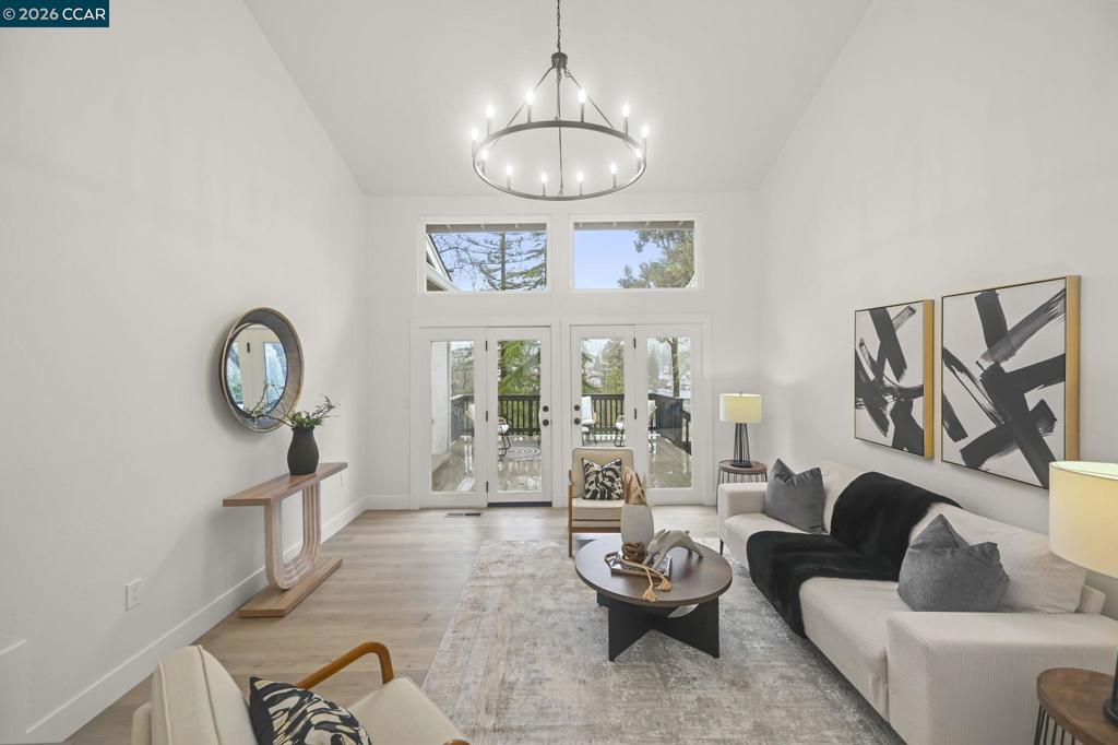 Experience elevated living in this beautifully updated Virginia Hills home on the Pleasant Hill–Lafayette border. Scenic hillside views greet you the moment you enter. Soaring vaulted ceilings and light oak wood-look flooring enhance the inviting living room, which opens to expansive decks showcasing the serene backdrop. The spacious dining room features a garden-style window and statement chandelier, perfect for memorable gatherings. The updated kitchen shines with crisp white cabinetry, quartz counters, breakfast bar seating, and new GE gas range and dishwasher, flowing seamlessly into the family room with a classic brick fireplace and easy deck access for ideal indoor-outdoor living. Outside, multiple decks and patios, a grassy lawn framed by pine and redwood trees, and space for gardening or play create a private retreat. The primary suite offers dual vanities and two closets, while three additional bedrooms share a remodeled bath. Indoor laundry and a garage with epoxy floors and loft storage complete the home. Close to shopping, schools, trails, and dining. A must see.