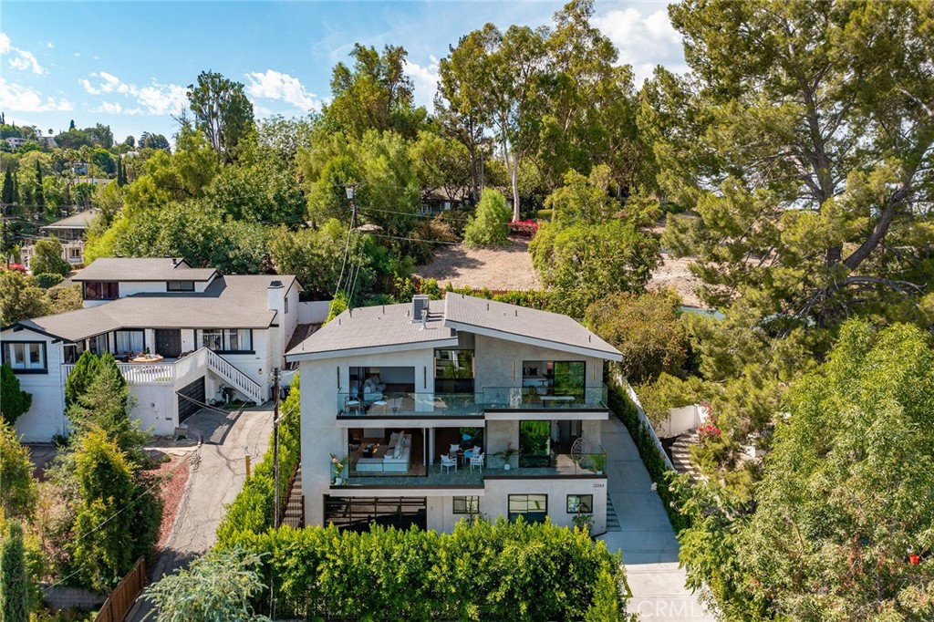 Gated modern estate newly constructed in 2024 with newly built pool & spa located South of the Boulevard with Valley, mountain, & city light views! Privately tucked away and hidden from the street, the property is situated down a long gated driveway with pedestrian access and flanked by tall growth hedging. Oversized parking can accommodate 10 cars plus there is direct access to an extra deep 540 SF 2-car garage. The interiors boast meticulous craftsmanship, designer finishes, and almost every room looks out to gorgeous views. A glass pivot entry door opens to a grand foyer where you’ll find a completely open floor plan filled with natural light from sweeping glass doors that open to the vistas beyond. The chef’s gourmet kitchen boasts massive center island with breakfast bar seating, stainless gourmet appliances, custom soft close cabinetry with quartz counters, separate wine fridge, and great pantry space. The kitchen opens directly to all living spaces including the formal dining room, the spacious family room with stone fireplace, and separate separate den – all rooms highlighted by glass pocket doors & sliders that open to a sprawling wraparound balcony deck with seating area that overlooks the amazing Valley & mountain views. A lower level movie theater has a full bathroom, access to the exterior, and can alternatively be used as a guest suite. Ascend a stunning floating glass and iron staircase to the upper level where you’ll find four well appointed bedrooms including the luxurious primary suite featuring stone fireplace, pocket doors that open to a balcony deck overlooking the gorgeous views, expansive walk-in closet, and sumptuous en-suite bathroom with custom floating vanity with dual sinks, designer tiling, walk-in steam shower with multiple shower heads, soaking tub, and separate toilet room. The three additional bedrooms have walk-in closets and access to their own bathrooms. Two of the rooms have large sliders that open to the backyard and the other opens to a large balcony deck overlooking the views. The resort styled backyard features brand new 2025 built pool and spa, large wraparound patio for lounging and outdoor dining, BBQ center, and grass lawns with lush landscaping. Desirably located adjacent to dining & shopping at the Calabasas Commons, Topanga Canyon shops/eateries, Westfield Topanga Mall/Village, Warner Center, hiking trails & minutes to Malibu.