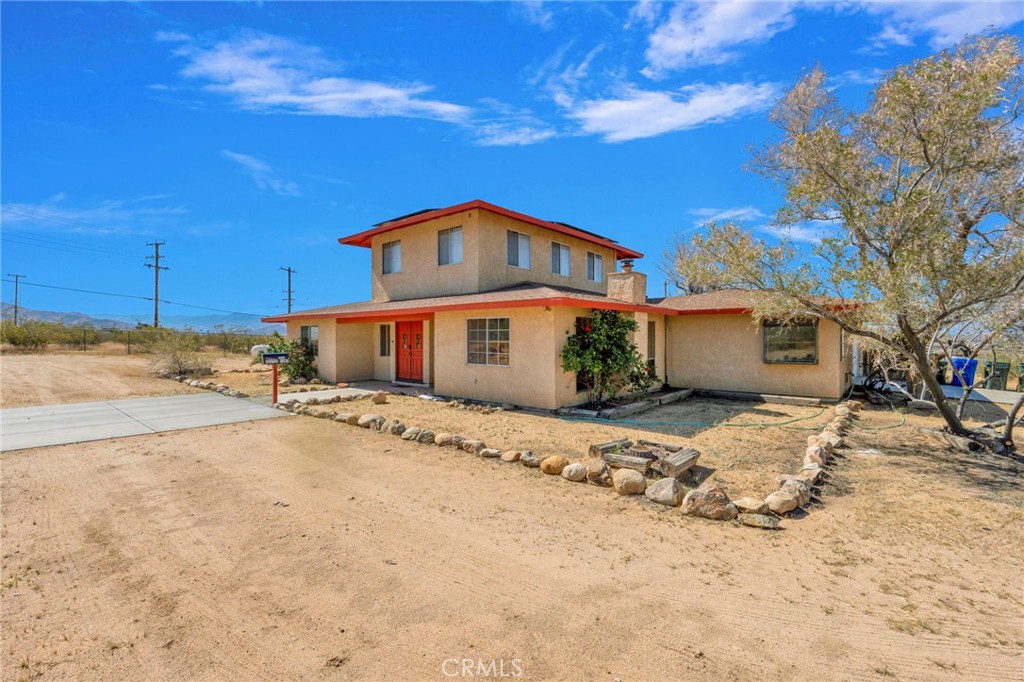 Set on 2 acres in Apple Valley mid-century modern-inspired home blends style, function, and desert living. The 2,010 sq ft residence includes 2 bedrooms, 2.5 bathrooms, and a flexible third room that can serve as an additional bedroom, home office, media space, gym, guest room, or creative studio. Inside, a spiral staircase adds a striking architectural touch, and windows filling the home with natural light while offering peaceful desert and mountain views. Step outside to a private balcony or a backyard oasis with an in-ground pool, perfect for relaxing, entertaining, or enjoying the High Desert sun. Additional highlights include a 2-car garage with a large driveway and fully paid solar, combining convenience and energy efficiency. Located in a quiet neighborhood, this home offers architectural charm, versatile living spaces, and private desert tranquility.