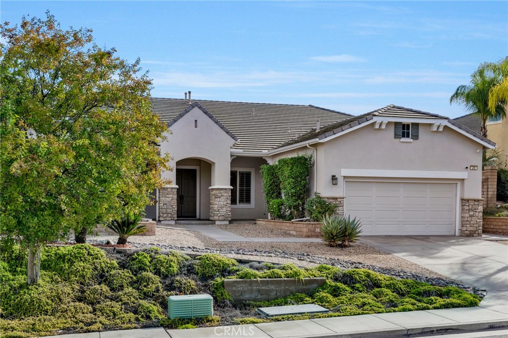 Beautiful single-story home with unobstructed views of Canyon Lake! Situated on a large corner lot in the Watermark tract of the highly desirable Tuscany Hills community, this home offers an open and spacious floor plan with over 3,200 sq. ft. of living space. It features 5 bedrooms, 3 full bathrooms, formal living and dining areas, an expansive primary suite with on-suite bath, and a versatile bonus room. The kitchen opens to the family room and includes granite countertops, stainless steel appliances, and a large pantry. The primary bedroom also enjoys stunning lake views, along with an on-suite bathroom and a generous walk-in closet. The laundry room provides added convenience with a sink, storage, and linen cabinets. The oversized bonus room—with its own separate entrance—offers endless possibilities: studio, gym, hobby room, office, or more. The fully finished 2-car attached garage includes epoxy flooring and overhead storage. The backyard is perfect for entertaining, featuring a large covered patio and pristine year-round lake views. Both front and back yards offer drought-tolerant, low-maintenance landscaping. Residents enjoy year-round access to the resort-style amenities of the Tuscany Hills community. The home is ideally located near freeways, shopping, areas