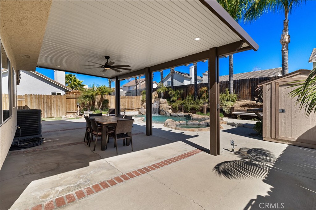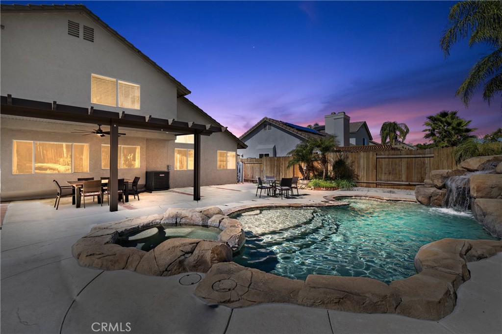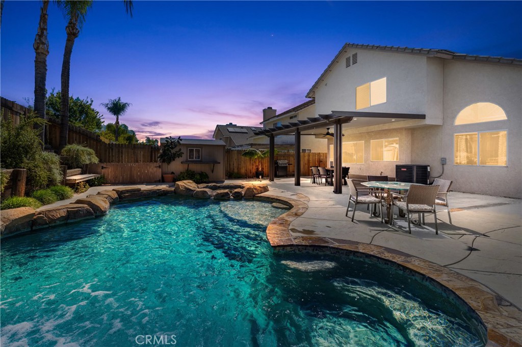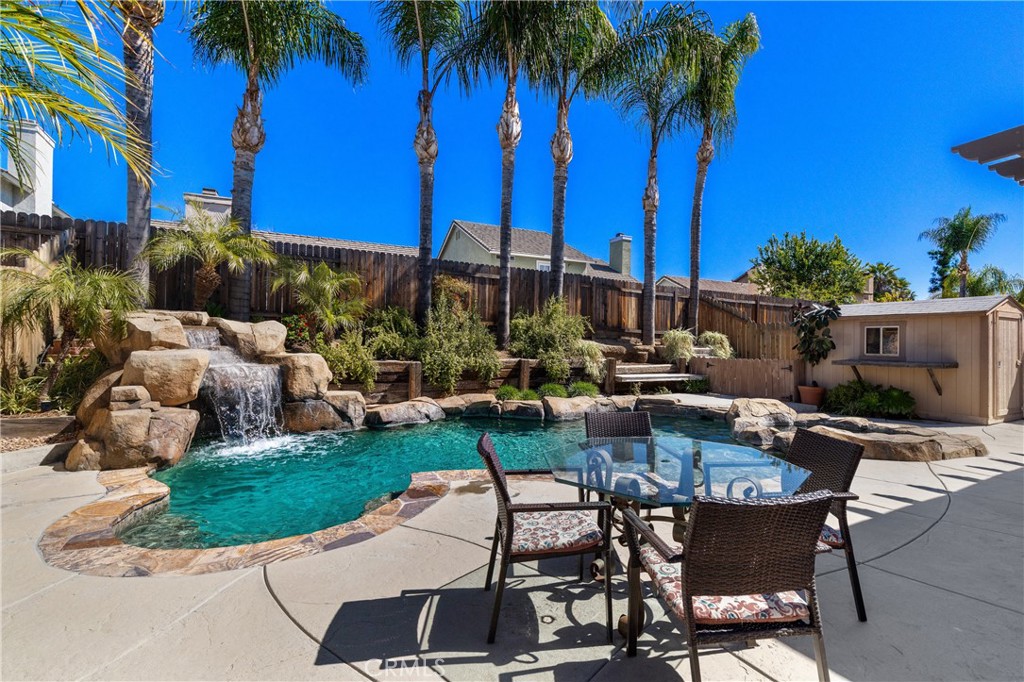 Discover your new lifestyle in this beautifully updated Murrieta POOL home. CUL-DE-SAC STREET, NO HOA, VERY LOW TAXES, NO MELLO ROOS TAX ASSESSMENTS AND A NEWER PAID-OFF 16 PANEL SOLAR SYSTEM! Just Imagine the ever-lasting memories you will make with family & friends in your own BACK YARD OASIS. The awesome salt-water pool/spa has a PebbleTec finish, rock waterfall with grotto, a tanning ledge designed for in-pool umbrella lounging, sunbathing and playing with the little ones. Extensive patio for entertaining including a large low maintenance Alumawood covered patio, with lighting and ceiling fan. There are gas & water stub-outs for a future BBQ and Fire Pit. Enjoy the convenience of the Pool/garden storage shed, space for a small garden and even a green space for Fido including a dog run. Moving inside, you will appreciate how this home has been cared-for. Refurbishing in the last few years include interior painting, carpeting (brand new), ceiling fans throughout. The HVAC and HOT WATER HEATER ARE NEWER AND UNDER WARRANTY. Beautifully updated kitchen with breakfast bar has refinished cabinets with pull-out shelving, granite countertops with full backsplash, WorkStation sink, stainless steel appliances with five burner stove and recessed lighting. The kitchen looks out to the family room with has views of the amazing backyard. The family room is complete with a fireplace for those colder winter evenings! Upstairs you’ll find an inviting primary bedroom suite with high ceilings complete with a private refurbished ensuite bathroom with dual-vanity sinks and walk-in closet with organizers. Down the wide hallway are 2 secondary bedrooms that share an extensively refurbished bathroom. Wait, there’s more, see the upstairs versatile FLEX-SPACE ROOM with a window and two skylights ideal for a den, office, nursery or even a 4th bedroom. Conveniently located in Central Murrieta, close to the 15/215 freeways, shopping, dining, entertainment, golfing and Wine Country. Within walking distance to Mountain Pride Park, which is one of the best parks in Murrieta, complete with a full 18 round free disc golf course and 2 baseball fields and a walking/jogging trail. Located in an AWARD-WINNING SCHOOL DISTRICT! Schedule your private showing today and let’s open escrow.