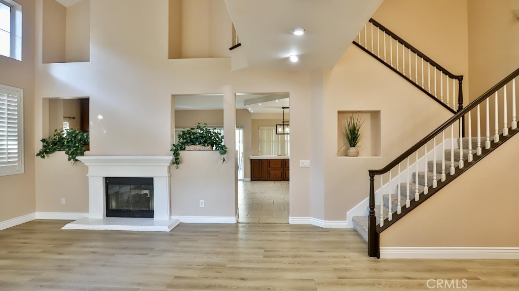 Beautiful home located in the highly desirable La Terraza development on the east side of Yorba Linda. This spacious residence presents an inviting and open floor plan that perfectly blends modern updates with classic charm. you’ll be greeted by soaring ceilings and walls of windows that flood the home with natural light. The dining areas are highlighted by a double-sided fireplace that connects to the cozy family room and breakfast nook. Up the staircase is the over-sized master bedroom, spacious closet with built-ins and a jetted bathtub. The spa-like master bathroom features Travertine floors, his and her sinks and a walk-in shower. Three secondary bedrooms are a generous size and share the full hall bathroom.Convenient 2 car attached garage with direct access. Relax in the peaceful backyard with room for entertaining. one of biggest backyard in the community with flowers, fruit trees and relax areas. Close to shopping, entertainment, award winning schools and walking distance to Bryant Ranch. Welcome home!