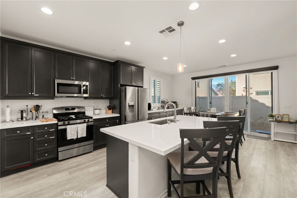 Welcome to the prestigious gated community of Terramor, where luxury living meets breathtaking surroundings. Perched near the top of the community, this nearly new home offers modern finishes, open spaces, and an abundance of natural light throughout. As you enter, you’ll immediately notice the bright, airy feel and the highly upgraded laminate flooring that flows seamlessly through the entire first level. The main floor includes a full bedroom and bathroom—an ideal builder-option upgrade perfect for guests, in-laws, or a home office. The chef-inspired kitchen features rich hardwood cabinetry, quartz countertops, stainless steel appliances, and a spacious center island accented with pendant lighting. It opens to an expansive great room designed for entertaining, relaxing, and gathering with loved ones. Upstairs, you’ll find three generous bedrooms. The two secondary bedrooms are exceptionally large, offering flexibility for additional office space, a playroom, or guest accommodations. The owner’s suite is a true retreat, complete with serene mountain views, a spa-like ensuite featuring a walk-in shower, dual sinks, and an oversized walk-in closet. Living in Terramor means enjoying resort-style amenities every day. The community features a stunning clubhouse, a fully equipped gym (no membership needed!), multiple pools including a lap pool and a children’s pool, hiking and biking trails, dog parks, and so much more—fun and convenience for the entire family. Lightly lived in and meticulously maintained, this home feels practically brand new. Don’t miss your chance to tour this beautiful property—run, don’t walk!