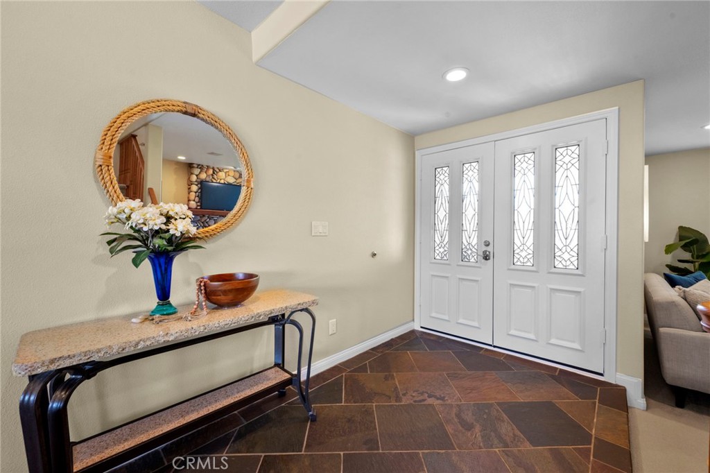 Stunning custom-remodeled 5-bedroom, 4-bath home featuring a main level suite and a luxurious upper lever primary suite, with sweeping mountain views from nearly every room. Designed for both everyday living and unforgettable entertaining, this home offers breathtaking snow-capped mountain views in the winter and sparkling city lights in the evening. The expansive great room features a built-in bar complete with refrigerator, sink and even a dishwasher, which opens to a large deck—perfect for enjoying morning coffee or sunset views. The upstairs primary suite is a true retreat where you can wake up to panoramic views from every window. The en-suite bathroom features granite counters on dual vanities, a jacuzzi tub, and a spacious walk-in shower. Downstairs, the second primary suite—currently used as an office—includes a walk-in closet, en-suite bath, and direct access to the private backyard oasis with pool and spa. The exceptionally private backyard is built for entertaining, complete with a sparkling pool and jacuzzi, resurfaced in 2023, plus a fully equipped outdoor kitchen featuring travertine countertops, a large grill, cooktop, sink, refrigerator, granite countertops, a huge grass area and outdoor heaters for year-round enjoyment. The custom kitchen overlooks the pool and showcases solid wood cabinetry, a five-burner gas cooktop, built-in microwave, walk-in pantry, and inverter linear refrigerator (included). Enjoy seamless indoor-outdoor living with direct access to the covered patio with a built-in gas heater. Additional highlights include a custom fireplace in the living room, a bonus storage area under the staircase that could serve as a wine cellar, and built-in surround sound throughout the home and backyard. Four bedrooms are located downstairs, along with a laundry room with washer and dryer included and a large linen closet. The two-car garage offers built-in cabinetry, a workbench and attic storage. There is RV parking along the side of the home and space for three cars in the driveway. Energy-efficient upgrades include owned solar, a new tankless water heater, and dual-zone A/C for both levels. Ideally located in Laguna Niguel with NO HOA, just minutes from Dana Point Harbor and some of Southern California’s most beautiful beaches. DON’T MISS THE HOME TOUR VIDEO COMING SOON