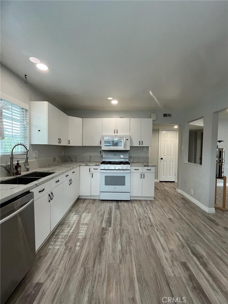 Settle into this beautifully remodeled 3-bedroom, 2-bathroom rental located on a quiet residential street in Newhall. This home offers a comfortable, move-in-ready space with modern finishes and a layout designed for everyday living. Inside, you’ll enjoy a bright kitchen with quartz countertops, new wood-look flooring throughout, updated bathrooms with clean, modern finishes, and contemporary lighting. Large windows bring in plenty of natural light, creating a warm and open feel. Central heating and air conditioning provide year-round comfort, and a washer and dryer are included for added convenience. Outdoor space adds to the appeal, with a fenced front yard and a backyard with fresh concrete that’s perfect for relaxing, working outside, or extra storage. Driveway parking and a garage with built-in cabinets make day-to-day life easy and organized. A fully paid solar system with backup batteries helps keep energy costs low throughout the year. Located close to public transportation, shopping, freeway access, and a nearby park, this home offers a practical and comfortable place to live. Available for lease and shown by appointment.