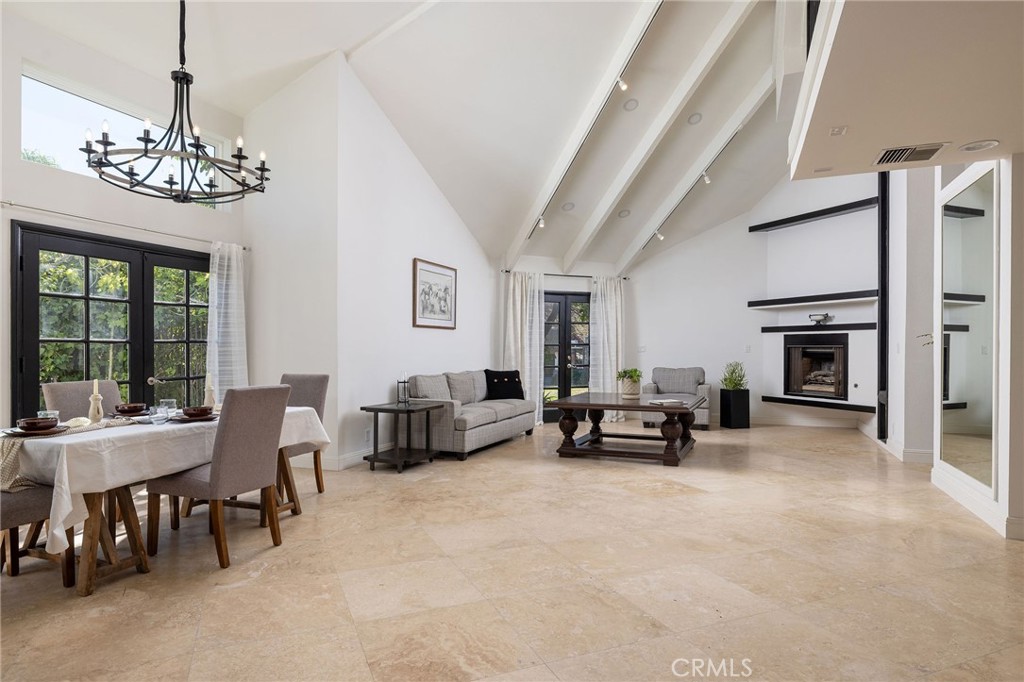 Newly-remodeled, Nellie Gail Ranch view home with private outdoor living.  Enjoy sweeping mountain vistas from this three-level residence with rooftop deck, set on roughly 1/4 acre of flat, usable land. A generous driveway leads to a large 3-car garage and manicured landscaping, making for a welcoming curb appeal. Inside, double entry doors open to grand interior proportions with vaulted ceilings and abundant natural light. The living room has dramatic two-story ceilings and a gas fireplace, and the dining area connects to the inviting patio through double French doors. The chef’s kitchen is equipped with Thermador double ovens, a SubZero refrigerator, granite countertops, island, and pantry storage. The generous family room features a second gas fireplace, large windows, and direct access to the backyard, continuing the home’s indoor-outdoor design. Fresh paint, travertine flooring, convenient powder room, downstairs office, and designated laundry room with sliding barn door complete the main floor. With six total bedrooms and four full baths, the upgraded home comfortably accommodates family and guests. On the top level, you will find the expansive and private primary suite surrounded by spectacular views and has private access to a large balcony. The primary bath has a chic soaking tub, double vanity, shower, and a spacious walk-in closet with natural light.  The private pool-size backyard includes a patio and lawn surrounded by lush, mature landscaping with Italian cypress and palm trees. Exterior stairs provide direct access to the upper floors, and the rooftop deck delivers sweeping views of the Santa Ana Mountains and across south Orange County. Nellie Gail Ranch provides exceptional value with low monthly HOA fees that cover security, trail maintenance, and baseline membership to the swim, tennis, and pickleball club. Community amenities include a clubhouse, restaurant, swimming facilities, 25 miles of trails, parks, and regular events. The location offers convenient access to freeways, shopping, and beaches, all within one of the region’s premier equestrian neighborhoods. A rare opportunity with exceptional space and views.