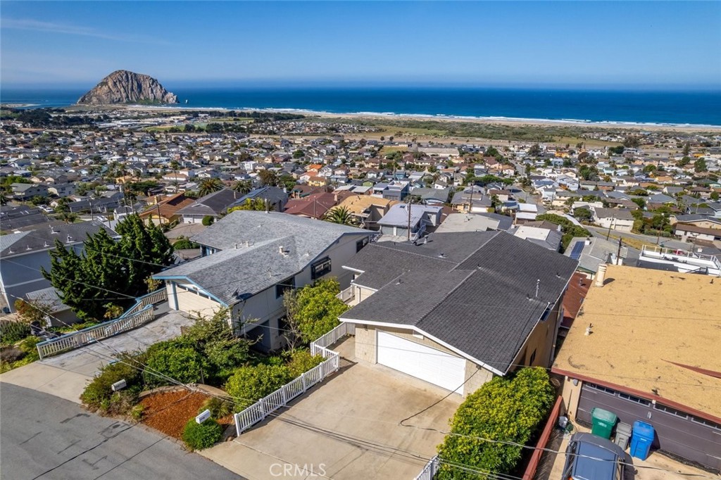Perched in Morro Bay Heights, this beautifully designed custom built home has unparalleled ocean views of Morro Rock and the Pacific Ocean! With 2,508 sq ft, this property offers 3 bedrooms and 2.5 bathrooms on a 4,000 sq ft lot. The “Wow” factor of this home with its unobstructed views, delivers one of the city’s most breathtaking coastal panoramas.The main living level is bathed in natural light with large windows and slider doors that frame the gorgeous ocean views. The open floor plan connects the living room, dining area, and kitchen. The spacious and thoughtfully designed kitchen features modern-style cabinetry, tile flooring, a center island, a separate bar/prep area, a walk-in pantry and a built-in desk/workspace. All three bedrooms are located on the lower level and two include full ocean views, each with a slider door opening to a view deck.The primary bedroom includes a large walk-in closet and ensuite bathroom. Additional features include a two-car garage with ample storage and a separate laundry room with a sink and door to the exterior. This exceptional property should not be missed! Information not verified.