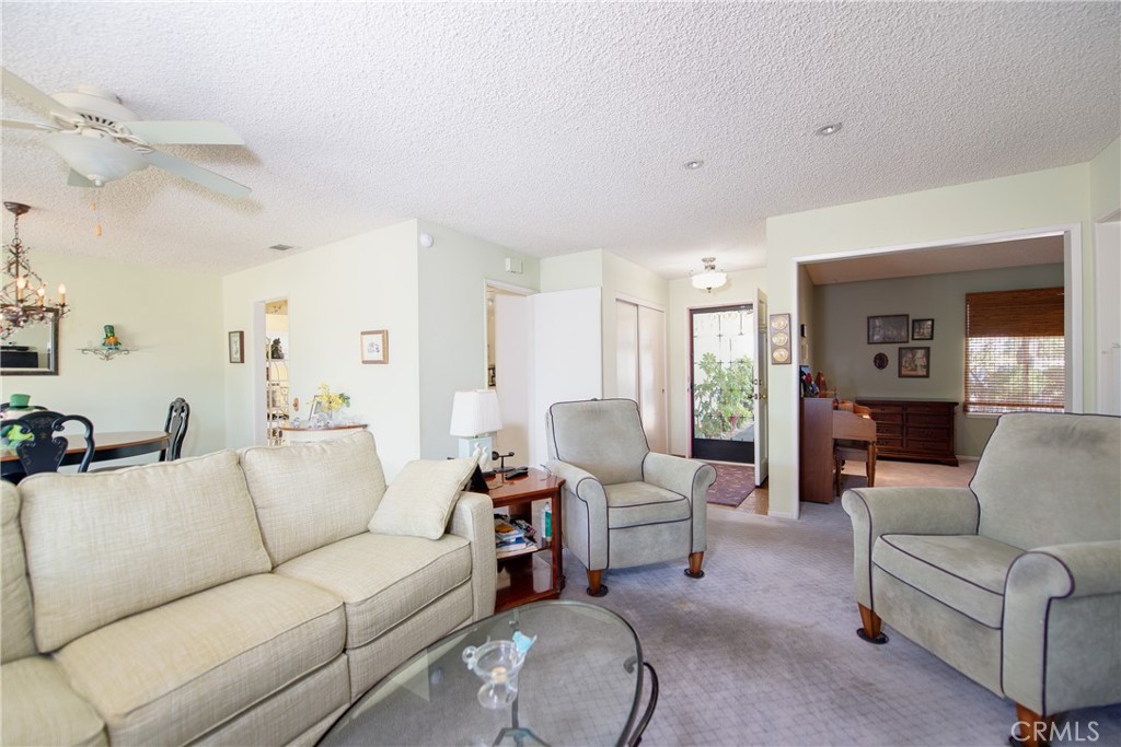 Nicely upgraded and expanded home on a unique very private oversized lot in the “Over 55” Sun City Civic Association. No adjacent home on one side or in back, instead just extraordinary park like views. This flexible floorplan has a large office/den easily convertible to a 3rd bedroom while the guest bedroom has direct access to a full bath, hence usable as a second master suite. The parquet floor entry leads to the bright open living room featuring a floor-to-ceiling stone type fireplace, recessed lighting and big slider to the rear yard with fabulous views. The view dining room has a ceiling fan and overlooks the lush back yard. The kitchen and adjoining dinette have beautiful wood-look tile floors. The kitchen has custom countertops, newer appliances including a 5-burner stainless steel range with air fryer, stainless steel dishwasher, microwave and double sink with water filter, ceiling fan and cabinets galore. The added dinette has plantation shutters and door to the back yard. Elegant view master suite with ceiling fan, slider to the back yard and a make-up station. The master bath has tile floors and tub with shower over. Generous sized guest bedroom featuring a wall of closets with mirrored doors, wainscoting and direct access to a full bath with tile floors. Inside laundry room with wood-look tile floor and cabinets. Lush view rear yard with a full width solid ceiling covered patio, manicured lawn, colorful gardens and trees, a large shed and forever views. The finished 2-car garage has the water heater, shelves and overhead storage. Low, low HOA dues. No Mello-Roos. Unparalleled community amenities including an outdoor amphitheater, two huge auditoriums with stages and dance floor, one year round pool and another seasonal pool, indoor spa, gym, billiard parlor, multiple card/meeting rooms, wood working and lapidary shops, library, arts and craft studio, pickleball, horseshoes, lawn bowling, shuffleboard building and much more. There is also an RV lot with very reasonable parking fees. Plenty of social and recreation clubs. Ideally located about an hour’s drive to L.A. and Orange Counties, downtown San Diego, Palm Springs and Idyllwild. Close to Temecula, Casinos and The Wine Country.