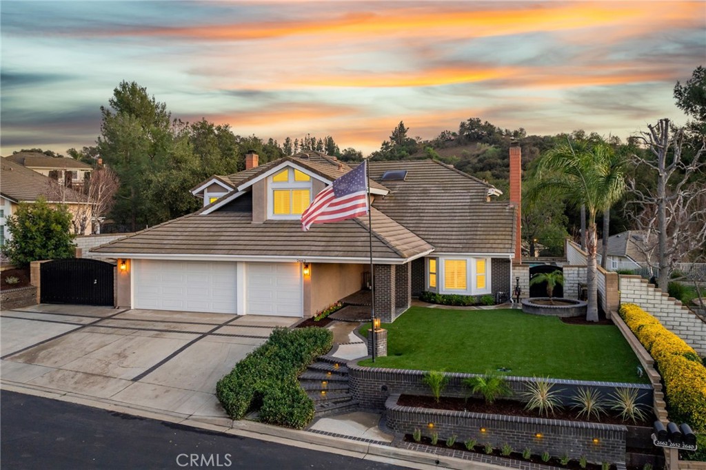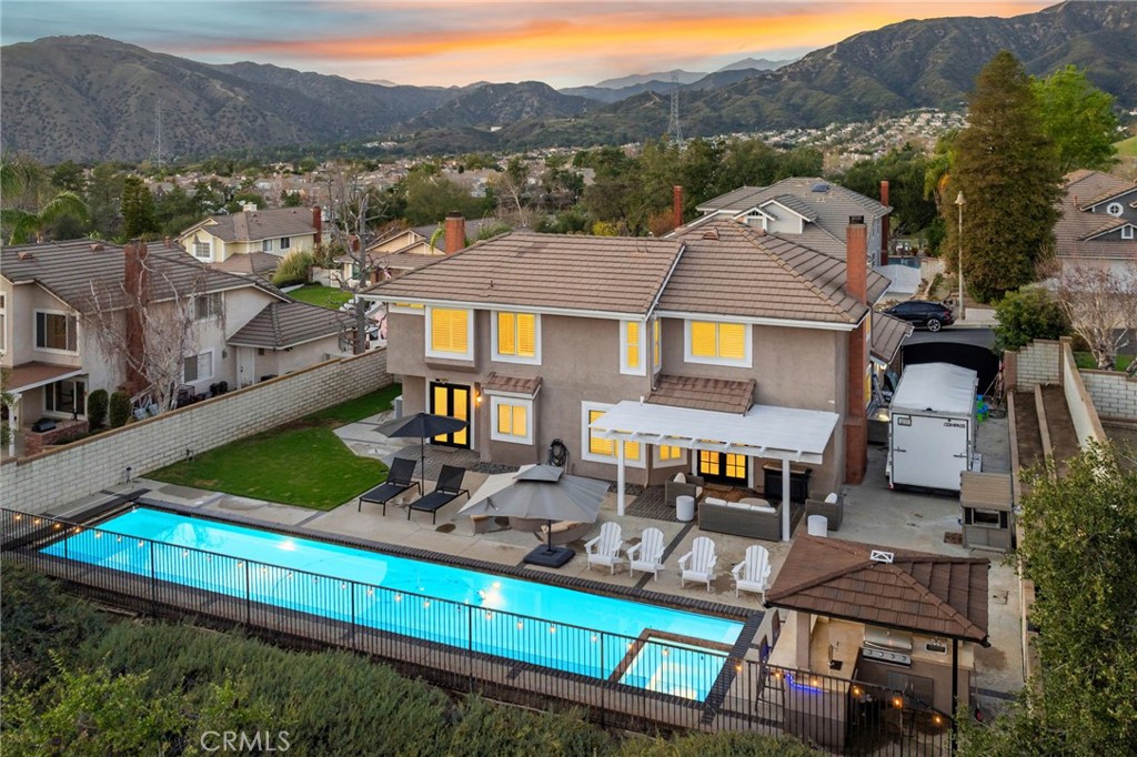 Stunningly Remodeled Pool Home with RV Parking and Scenic Views. Sited in the exclusive gated community of Live Oak at Emerald Ridge, this beautifully updated residence offers a serene retreat on a quiet cul-de-sac. Elevated slightly above street level, the home greets you with elegant brick hardscaping, meticulously landscaped grounds, and a covered front entryway adorned with brick decking and stately columns. Step inside to a grand open foyer featuring soaring ceilings and durable laminate wood flooring that flows seamlessly throughout the home. The formal living room impresses with a custom-tiled fireplace, vaulted ceilings, and natural light streaming through bright windows framed by plantation shutters. Adjacent, the formal dining room exudes sophistication with a chandelier and French doors offering picturesque views of the backyard oasis. The remodeled kitchen offers white shaker cabinets, granite countertops, a full tiled backsplash, center island, recessed lighting, and stainless steel appliances. Open to the family room, this space is perfect for entertaining. The family room features a stylish wet bar, a second tiled fireplace with a wood surround and mantel, built-in bookshelves, and French doors leading to the covered back patio. There is a main floor bedroom, 3/4 bathroom, laundry room, and direct access to the finished three-car garage. Ascend the open hallway upstairs to the expansive primary suite, where vaulted ceilings and stunning views of the greenbelt and rolling hills create a peaceful escape. The remodeled ensuite bathroom features a travertine-surrounded soaking tub, a separate glass-enclosed shower, dual sinks with a vanity counter, a walk-in closet, and a privacy door to the toilet. A versatile bonus/game room upstairs serves as an ideal second living space, complete with vaulted ceilings and scenic window views. Two additional bedrooms round out the upper level, including one with direct access to the updated hall bathroom. Step outside to your private backyard paradise, featuring a sparkling pool and spa with a durable automatic cover strong enough to walk on. Enjoy outdoor living with a built-in barbecue under a shaded rooftop, brick-ribboned decking, a custom fire pit with seating, and a massive RV parking area with hookups. A second side yard with grass and gated access. Backing to a greenbelt with no homes directly behind, the wrought-iron rear fence enhances the open, private ambiance with block walls on both sides.
