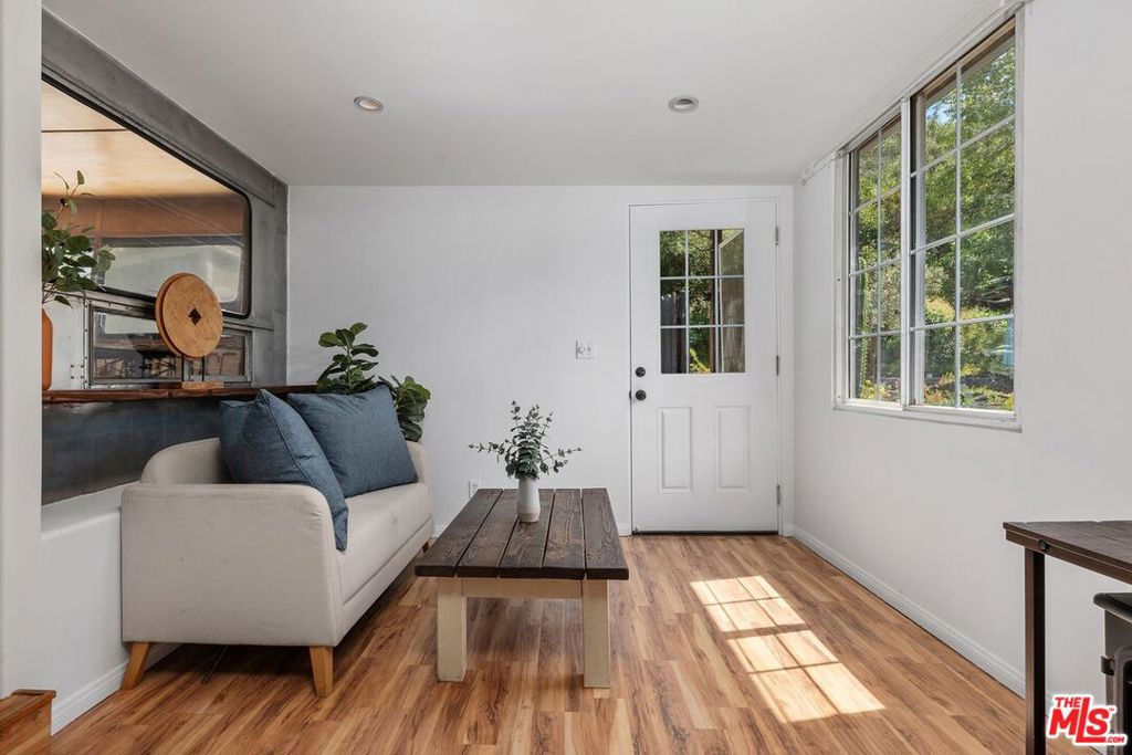 Boho-Chic Topanga Canyon Retreat. A unique, design-forward Topanga retreat blending vintage character with modern comfort. This approximately 700-square-foot residence incorporates a restored Spartan trailer, creating a distinctive two-bedroom, two-bathroom layout that offers a singular living experience. The interiors are filled with natural light and feature warm wood tones, clean finishes, a full kitchen, and two bathrooms with showers. The space feels relaxed and cohesive, with a seamless connection between the main living area and the restored trailer. Just outside, a private yard is surrounded by mature trees and lush greenery, with multiple seating areas ideal for entertaining or unwinding in a peaceful canyon setting. Located a stone’s throw from Topanga Village, you’ll have easy access to restaurants, a market, yoga studio, and local shops, while still enjoying the privacy and natural beauty of canyon living. Topanga State Park is just moments away for hiking and biking, along with quick access to the beach and Pacific Coast Highway. The home is part of a small, thoughtfully spaced enclave featuring a collection of classic aluminum residences (Spartan, Streamline, Silver Streak) and a tiny home, creating a quiet and unique community environment. Offered fully furnished for a turnkey Topanga living experience.